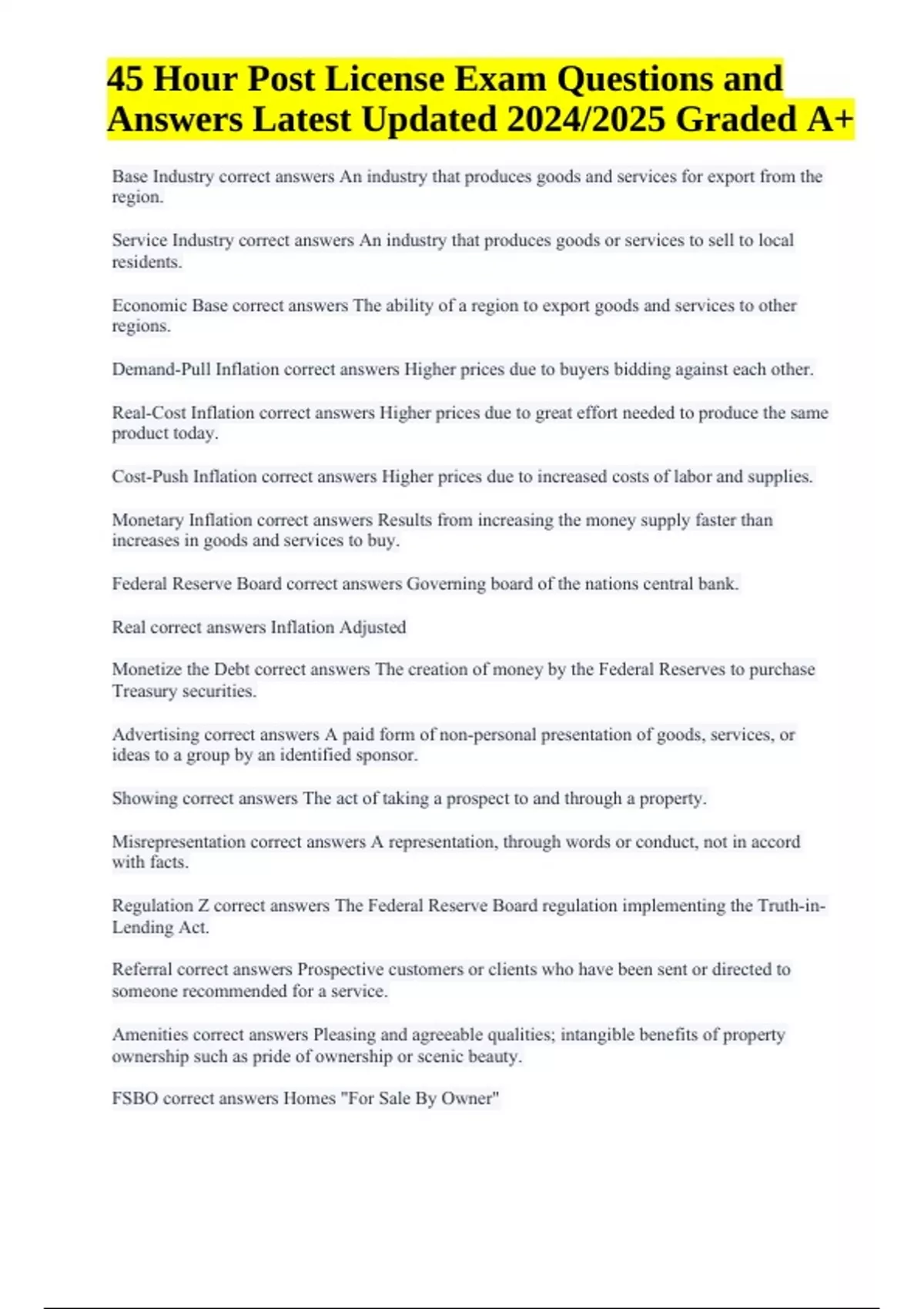 45 Hour Post License Exam Questions and Answers Latest Updated 2024/2025 (100% Correct)