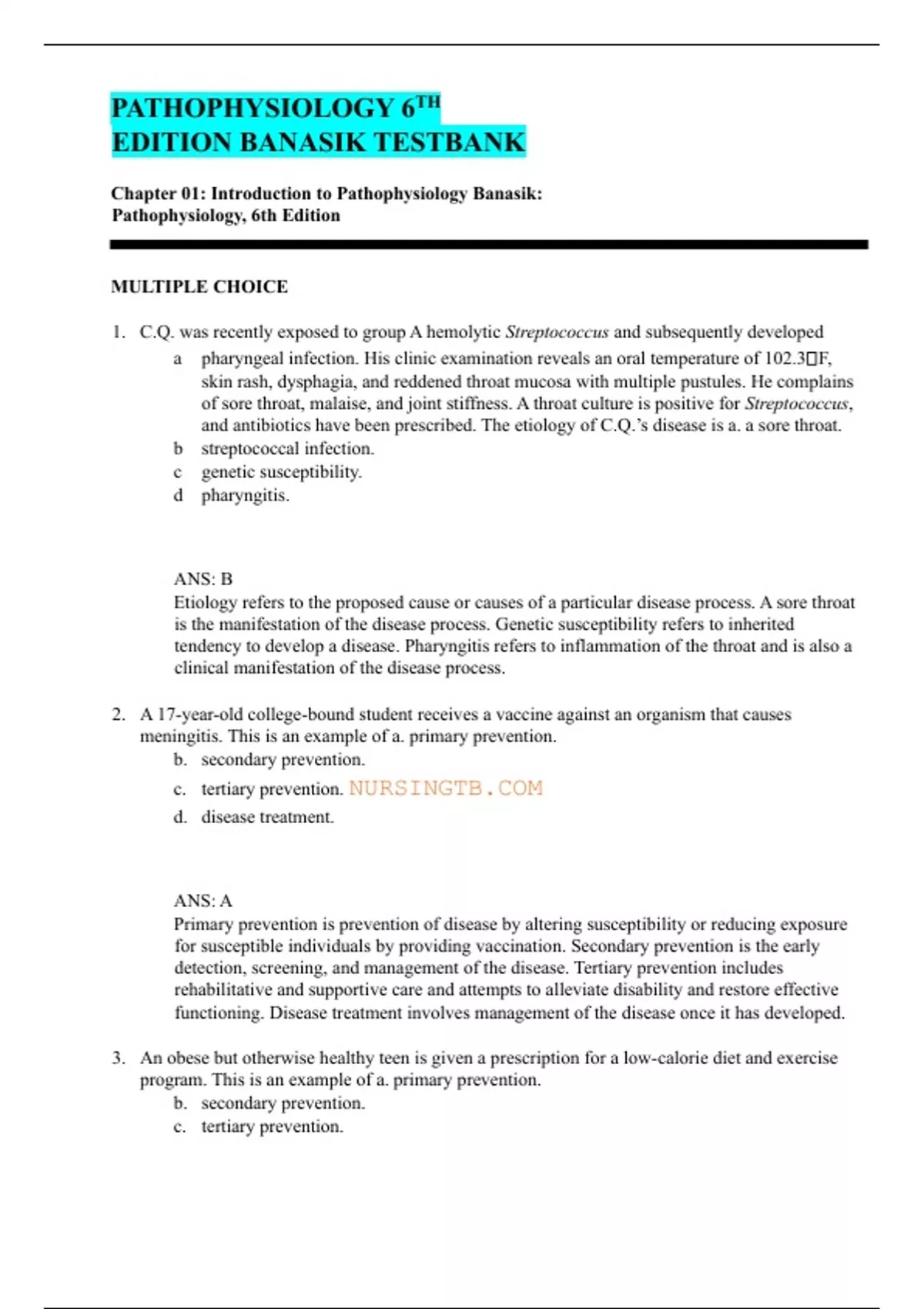 Chapter 01: Introduction to Pathophysiology Banasik: