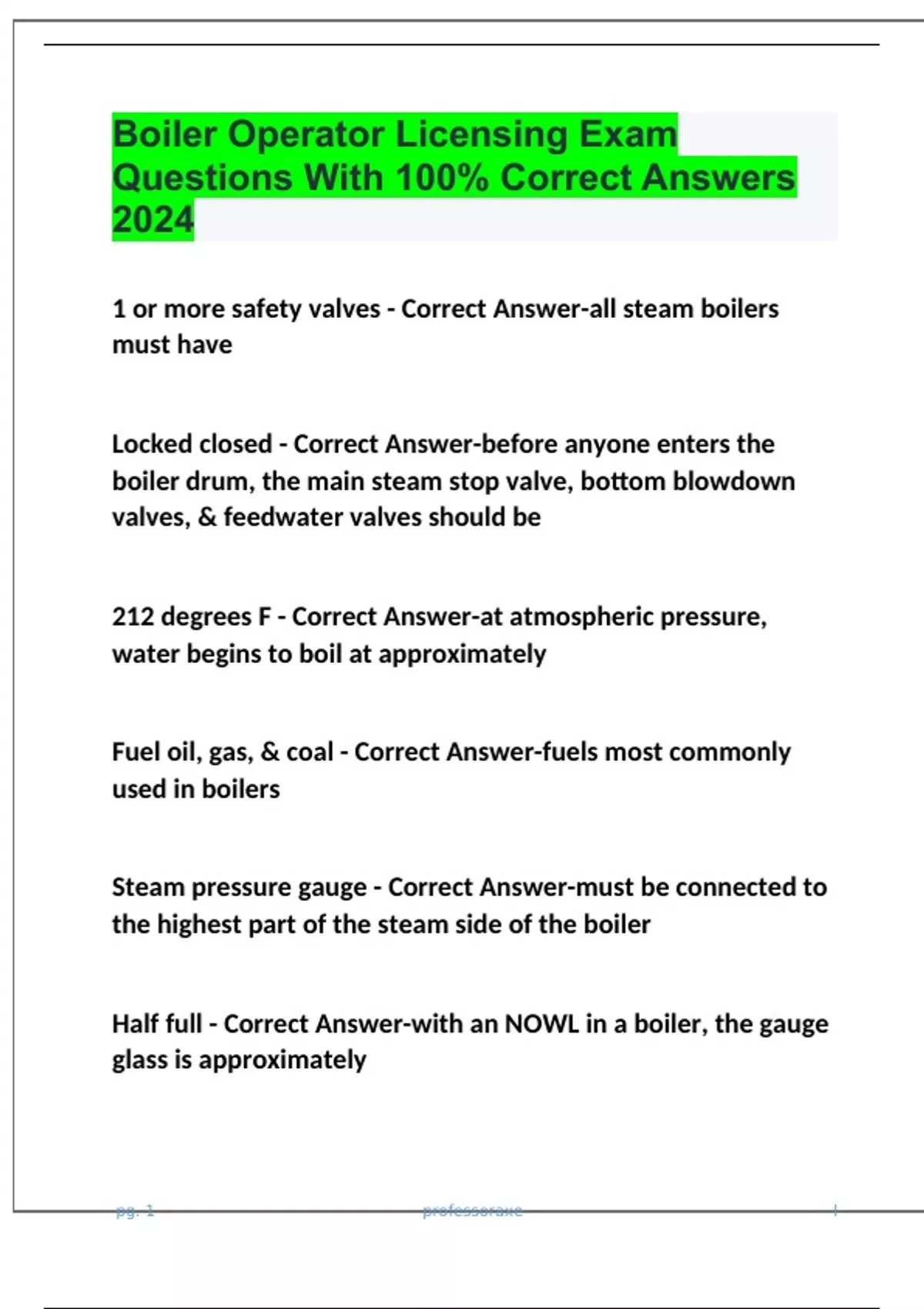 Boiler Operator Licensing Exam Questions With 100% Correct Answers 2024