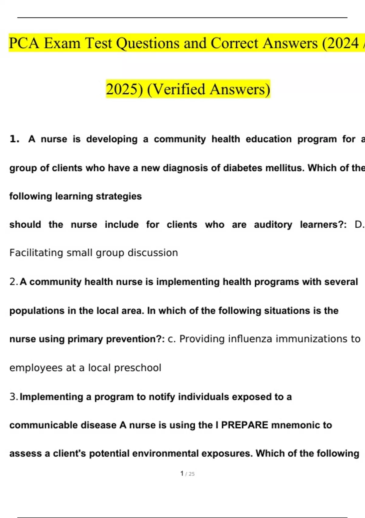 PCA Exam Test Questions and Answers (2024 / 2025) (Verified Answers)