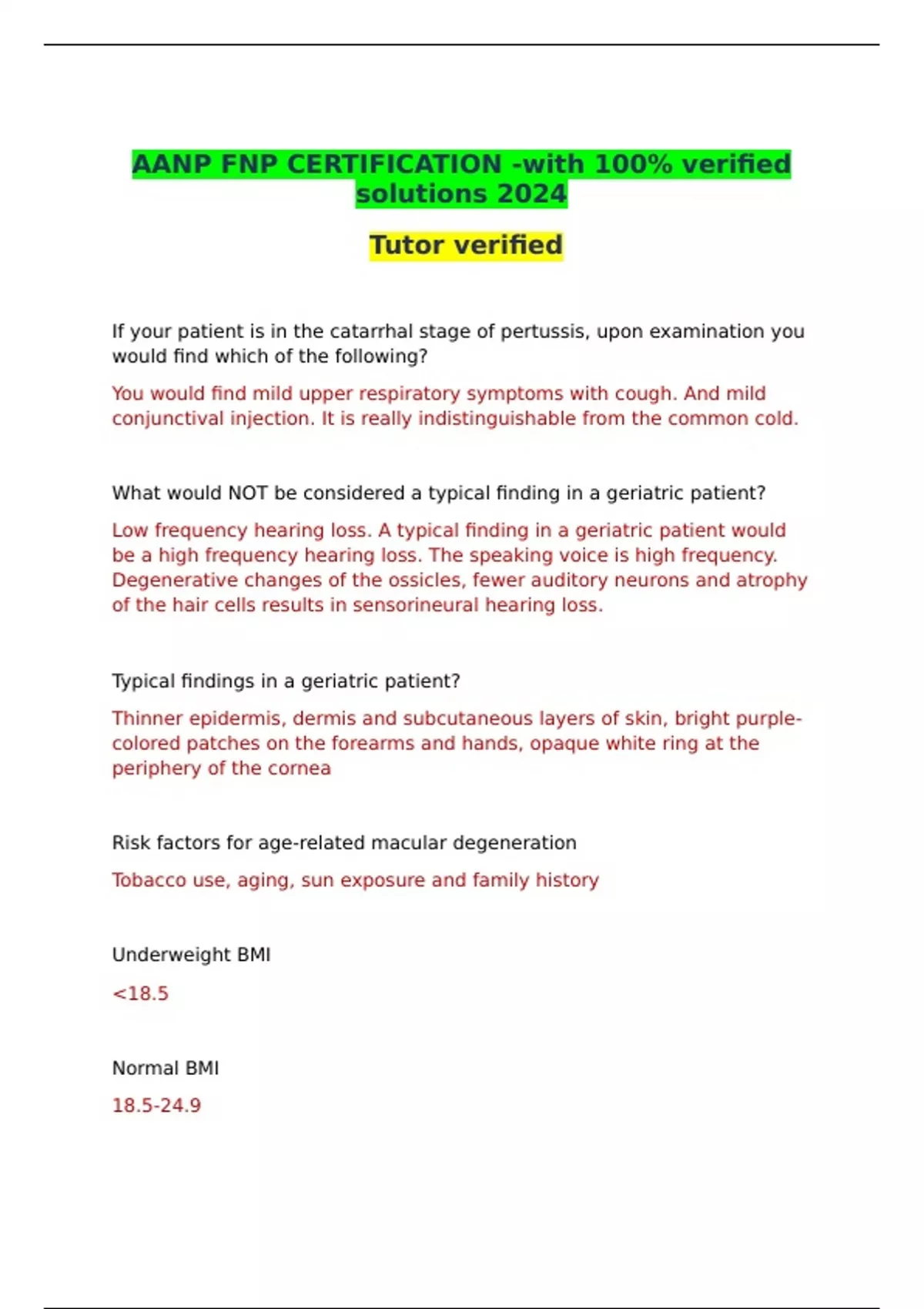 AANP FNP CERTIFICATION -with 100% verified solutions 2024