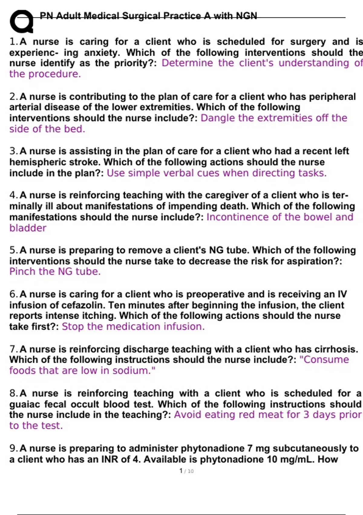PN Adult Medical Surgical Practice A with NGN Exam Questions And Answers