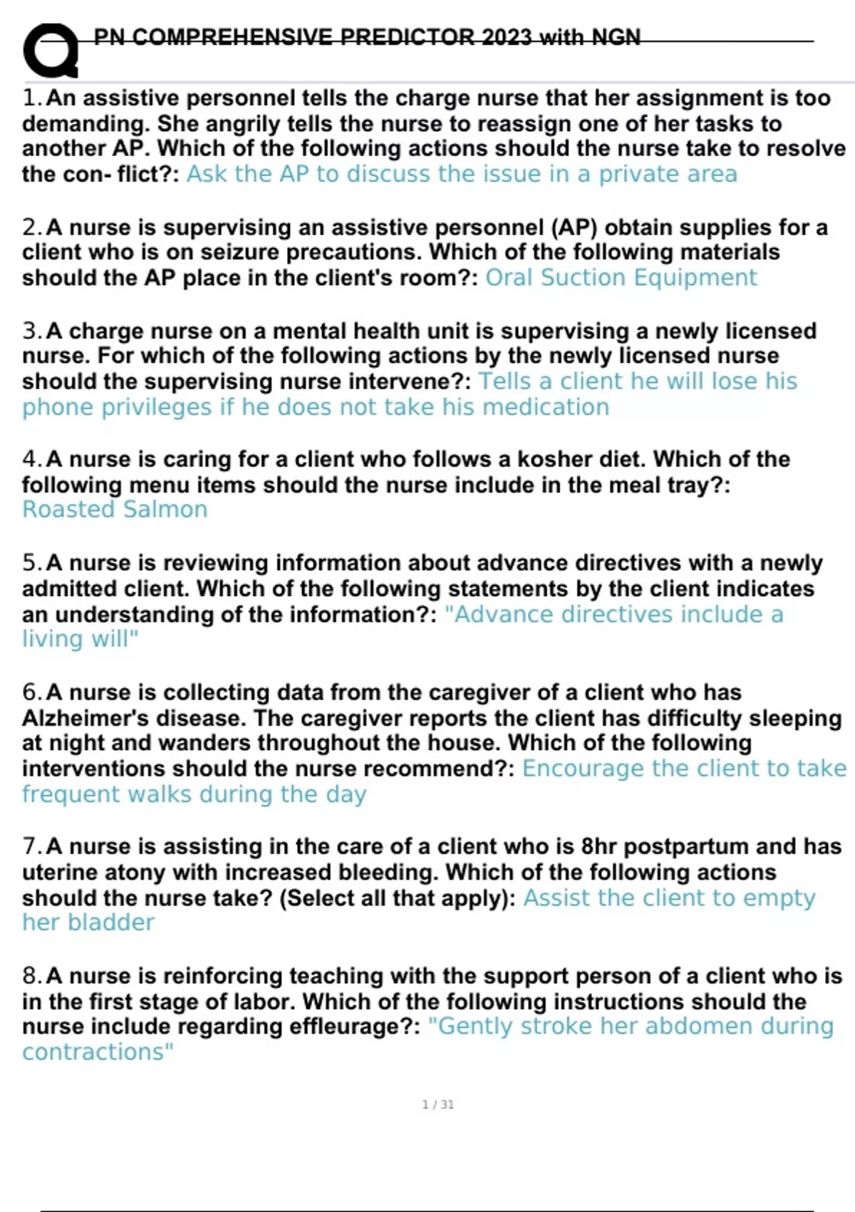PN COMPREHENSIVE PREDICTOR 2023 with NGN questions and answers verified 100%