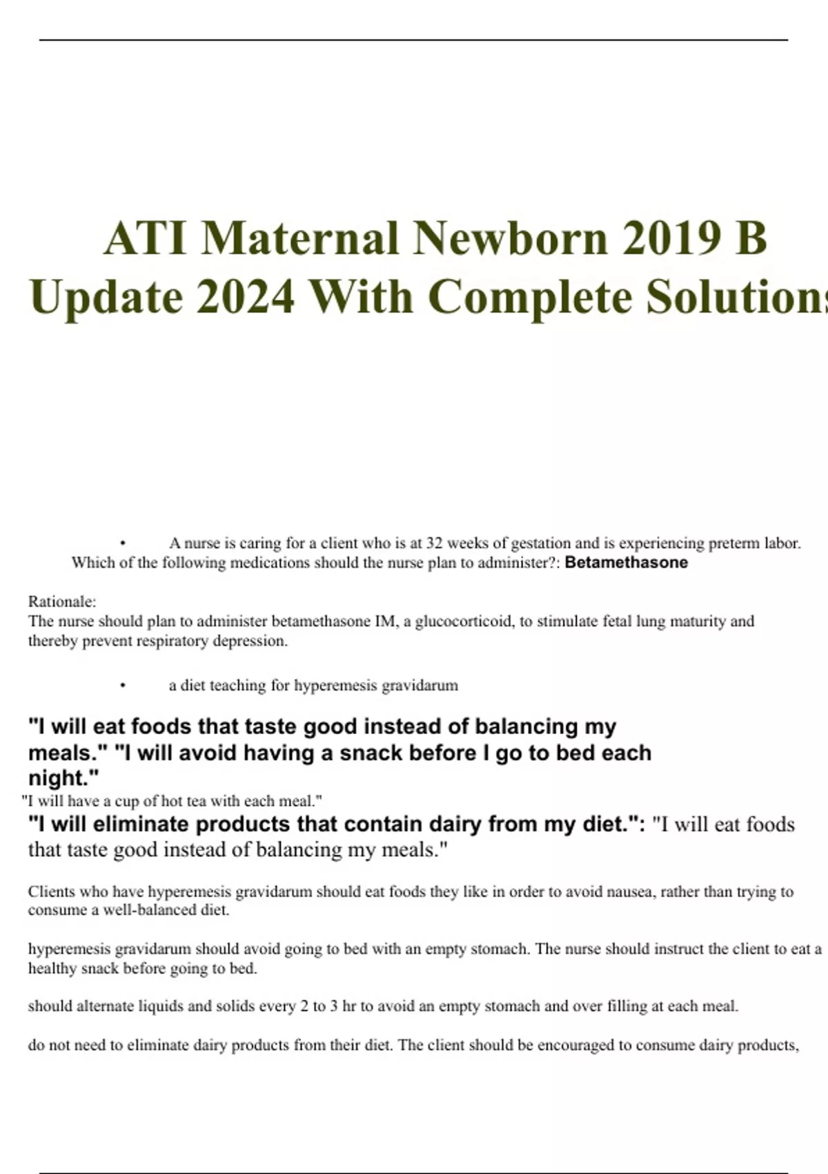 ATI Maternal Newborn 2019 B Update 2024 With 100% Complete Solutions