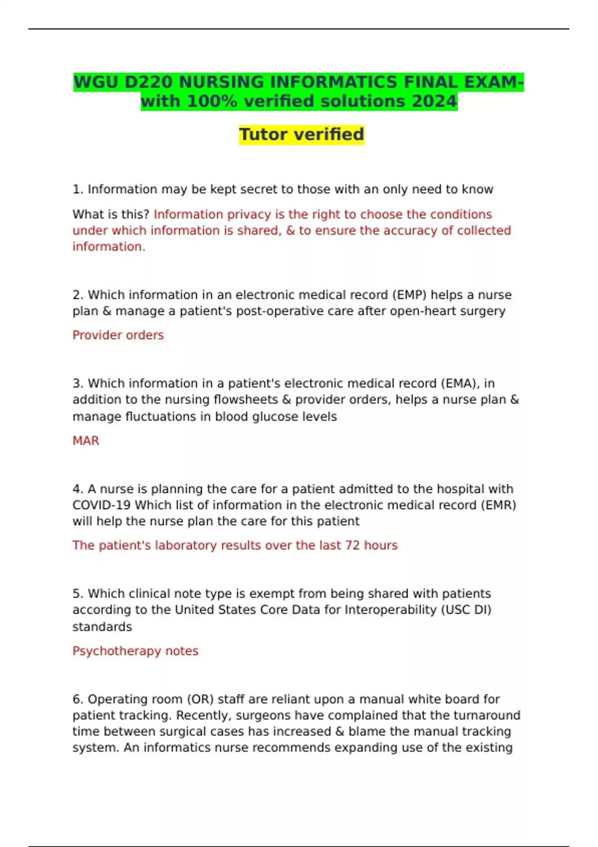 WGU D220 NURSING INFORMATICS FINAL EXAM-with 100% verified solutions 2024
