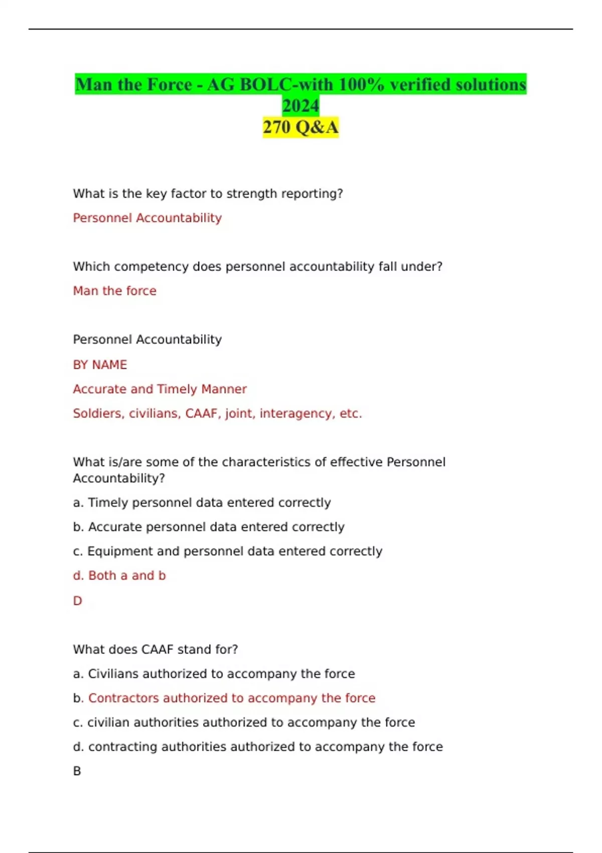 Man the Force - AG BOLC-with 100% verified solutions 2024