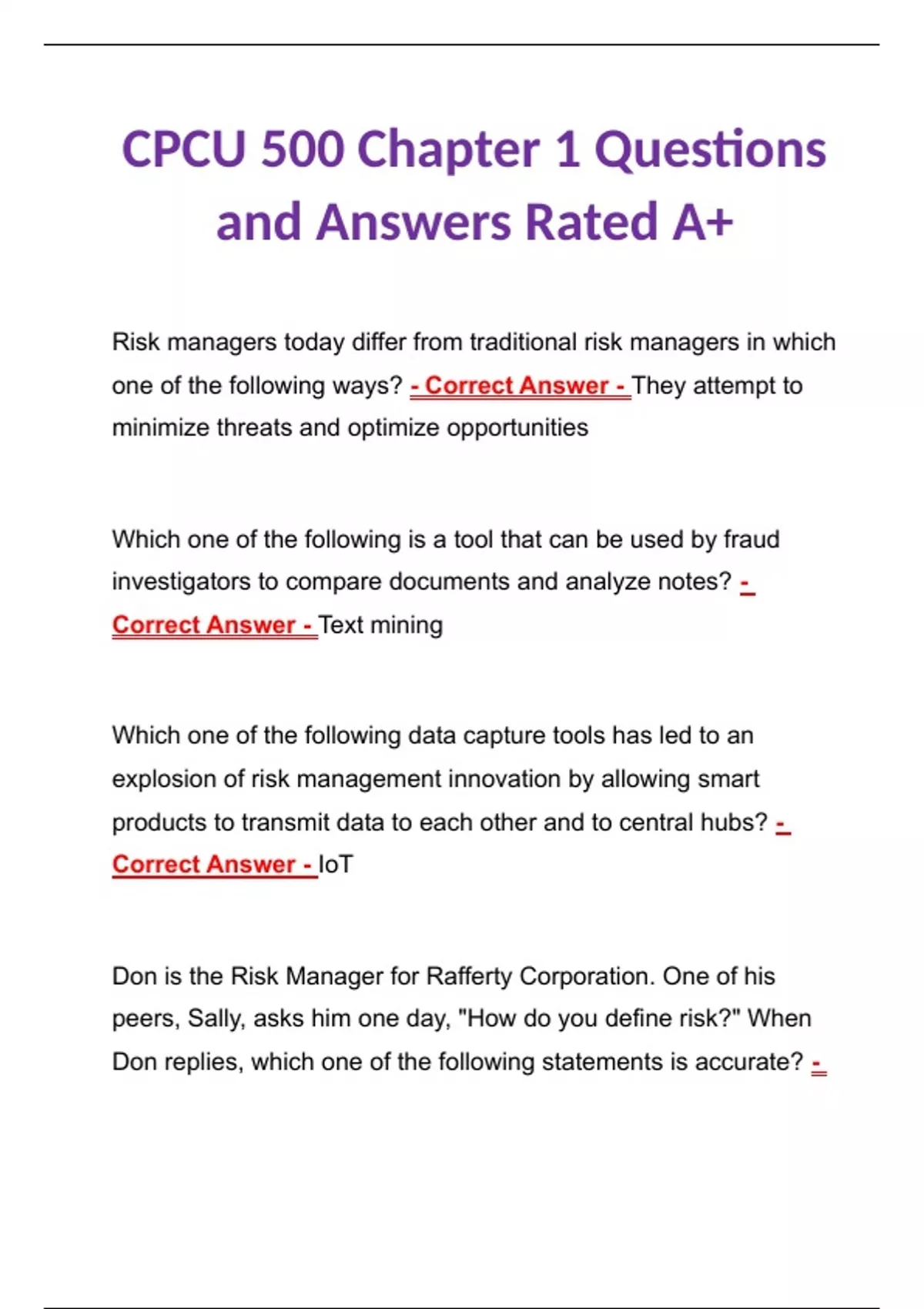 BUNDLE for CPCU 500 | Becoming a Leader in Risk Management and Insurance Exam | Questions and Answers 2024 Graded A+
