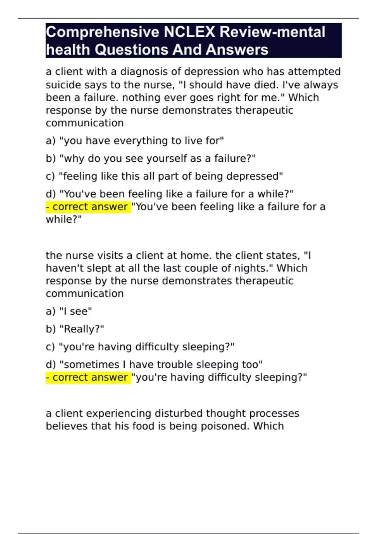 comprehensive nclex review mental health questions