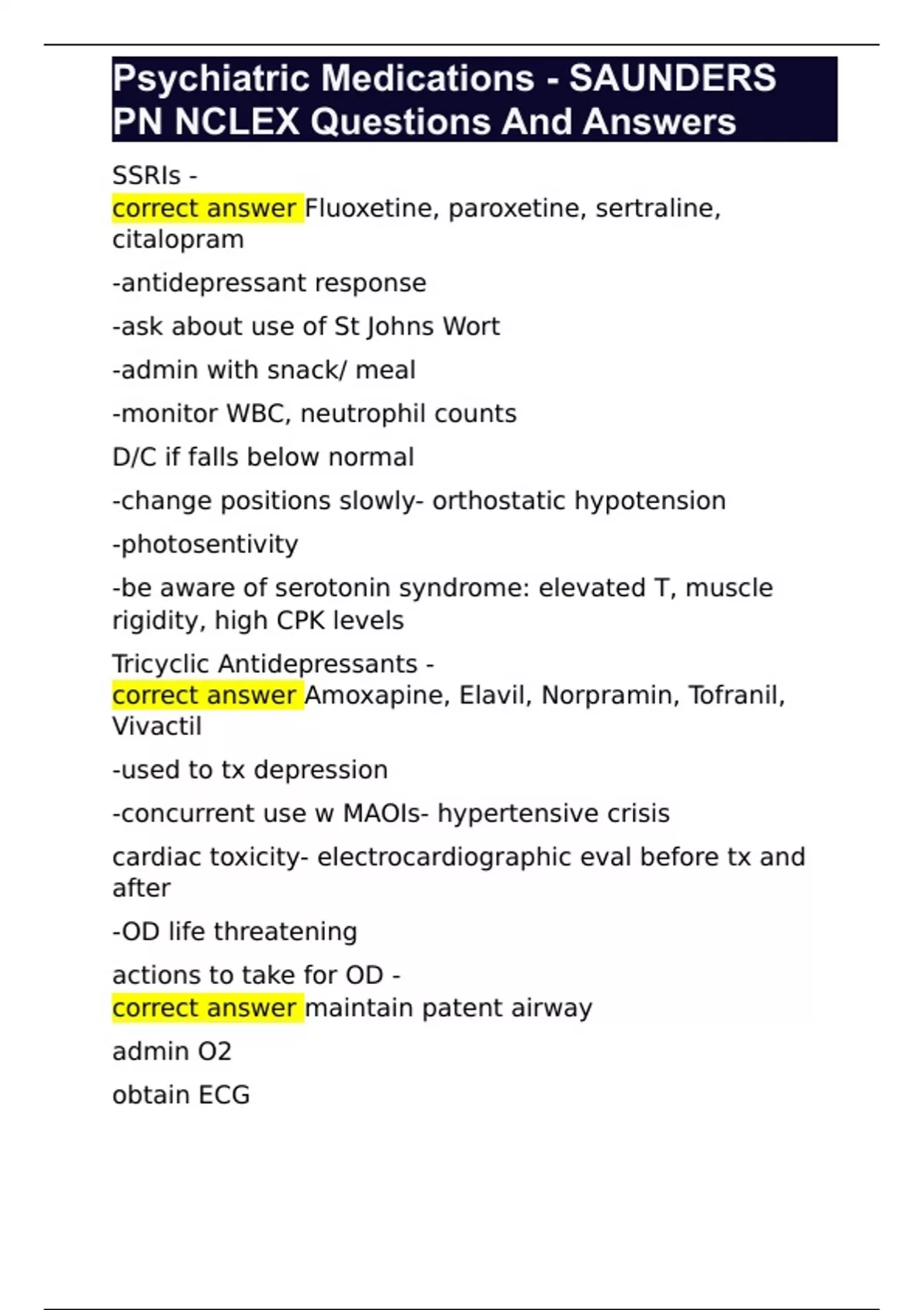 Psychiatric Medications - SAUNDERS PN NCLEX Questions And Answers
