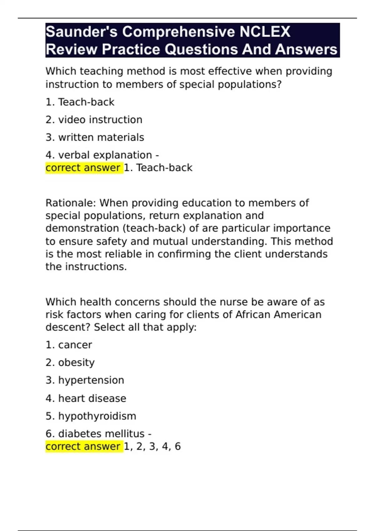Saunder's Comprehensive NCLEX Review Practice Questions And Answers