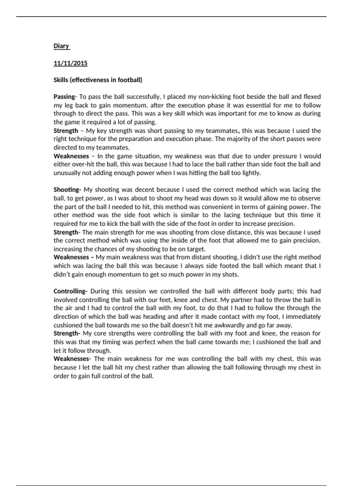 This course is designed to provide you with the best guidance to achieve your first Distinction* for your B-TEC Level 3 course. Here is an overview of what the document contains to meet following criteria with the Unit content: Assignment 1: Skills, Techniques and Tactics Required in Two Team Sports (P1, M1, P3) Assignment 2: Rules and Regulations of Team Sports (P2, M2) Assignment 3: Self-analysis of Performance in Two Different Team Sports (P4, M3, D1) Assignment 4: Performance Analysis of a Team in a Selected Team Sport (P5, M4, D2) Quick Summary is provided below on how you can save time and effort by following the examples of my assignments, which will help you to strive towards your target or exceed your expected grade for this year! On completion of this unit a learner should: 1 Know the skills, techniques and tactics required in selected team sports 2 Know the rules and regulations of selected team sports 3 Be able to assess own performance in selected team sports 4 Be able to assess the performance of teams in selected team sports.
