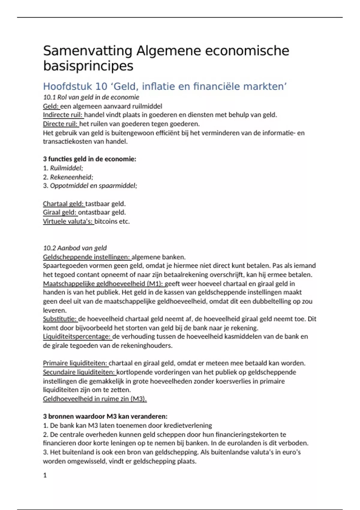 Hoofdstuk 10 ‘Geld, inflatie en financiële markten’