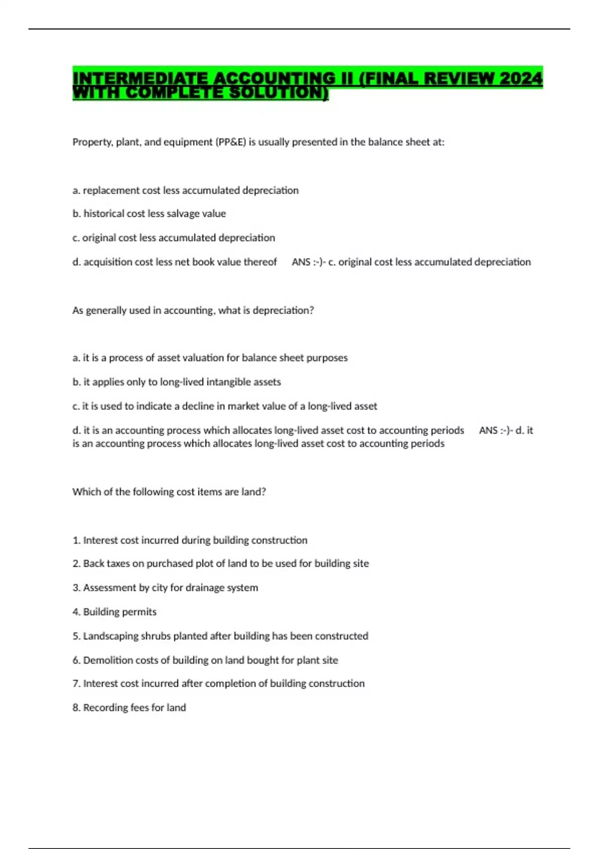 INTERMEDIATE ACCOUNTING II (FINAL REVIEW 2024 WITH COMPLETE SOLUTION)