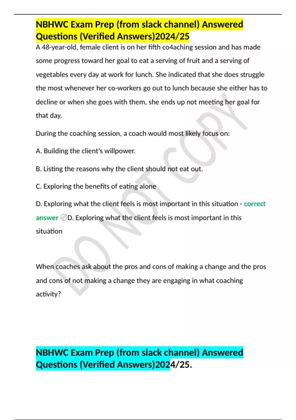 NBHWC Exam Prep (from slack channel) Answered Questions (Verified Answers)2024/25NBHWC Exam Prep (from slack channel) Answered Questions (Verified Answers)2024/25NBHWC Exam Prep (from slack channel) Answered Questions (Verified Answers)2024/25