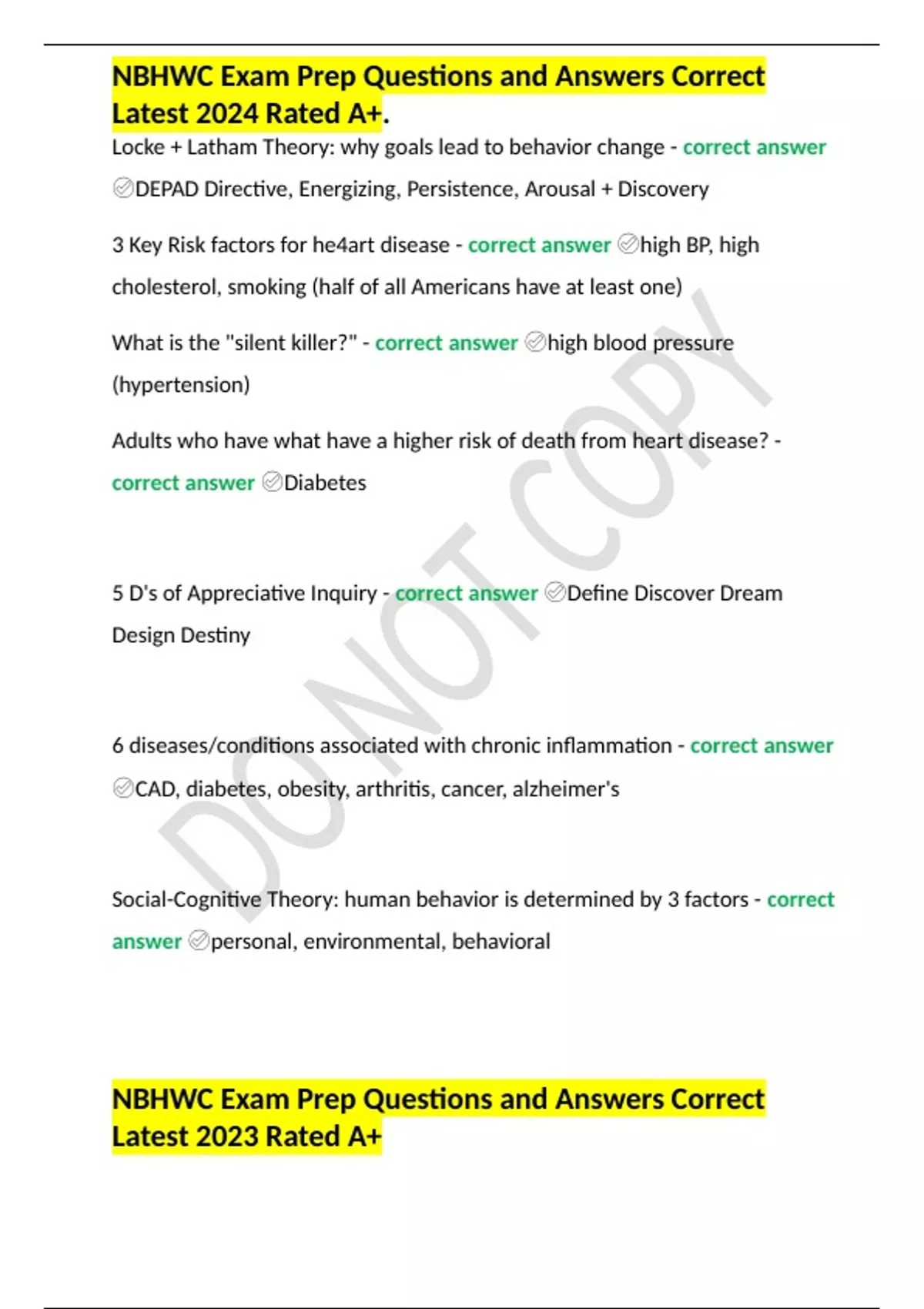 NBHWC Exam Prep Questions and Answers Correct Latest 2024 Rated A+