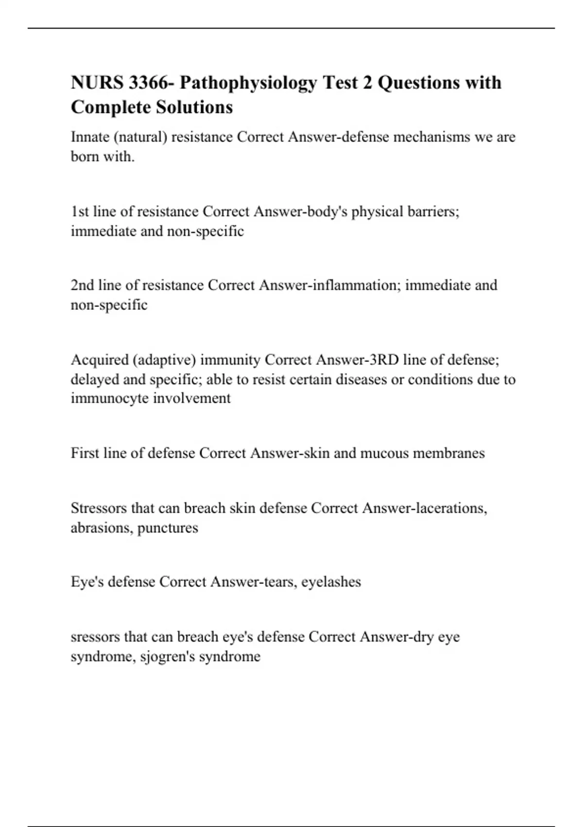 NURS 3366- Pathophysiology Test 2 Questions with Complete Solutions