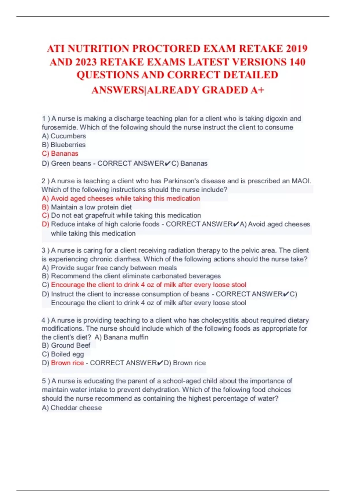 ATI NUTRITION PROCTORED EXAM RETAKE 2019 AND 2023 RETAKE EXAMS LATEST VERSIONS 140 QUESTIONS AND CORRECT DETAILED ANSWERS|ALREADY GRADED A+ATI NUTRITION PROCTORED EXAM RETAKE 2019 AND 2023 RETAKE EXAMS LATEST VERSIONS 140 QUESTIONS AND CORRECT DETAILED ANSWERS|ALREADY GRADED A+ATI NUTRITION PROCTORED EXAM RETAKE 2019 AND 2023 RETAKE EXAMS LATEST VERSIONS 140 QUESTIONS AND CORRECT DETAILED ANSWERS|ALREADY GRADED A+ATI NUTRITION PROCTORED EXAM RETAKE 2019 AND 2023 RETAKE EXAMS LATEST VERSIONS 140 QUESTIONS AND CORRECT DETAILED ANSWERS|ALREADY GRADED A+ATI NUTRITION PROCTORED EXAM RETAKE 2019 AND 2023 RETAKE EXAMS LATEST VERSIONS 140 QUESTIONS AND CORRECT DETAILED ANSWERS|ALREADY GRADED A+