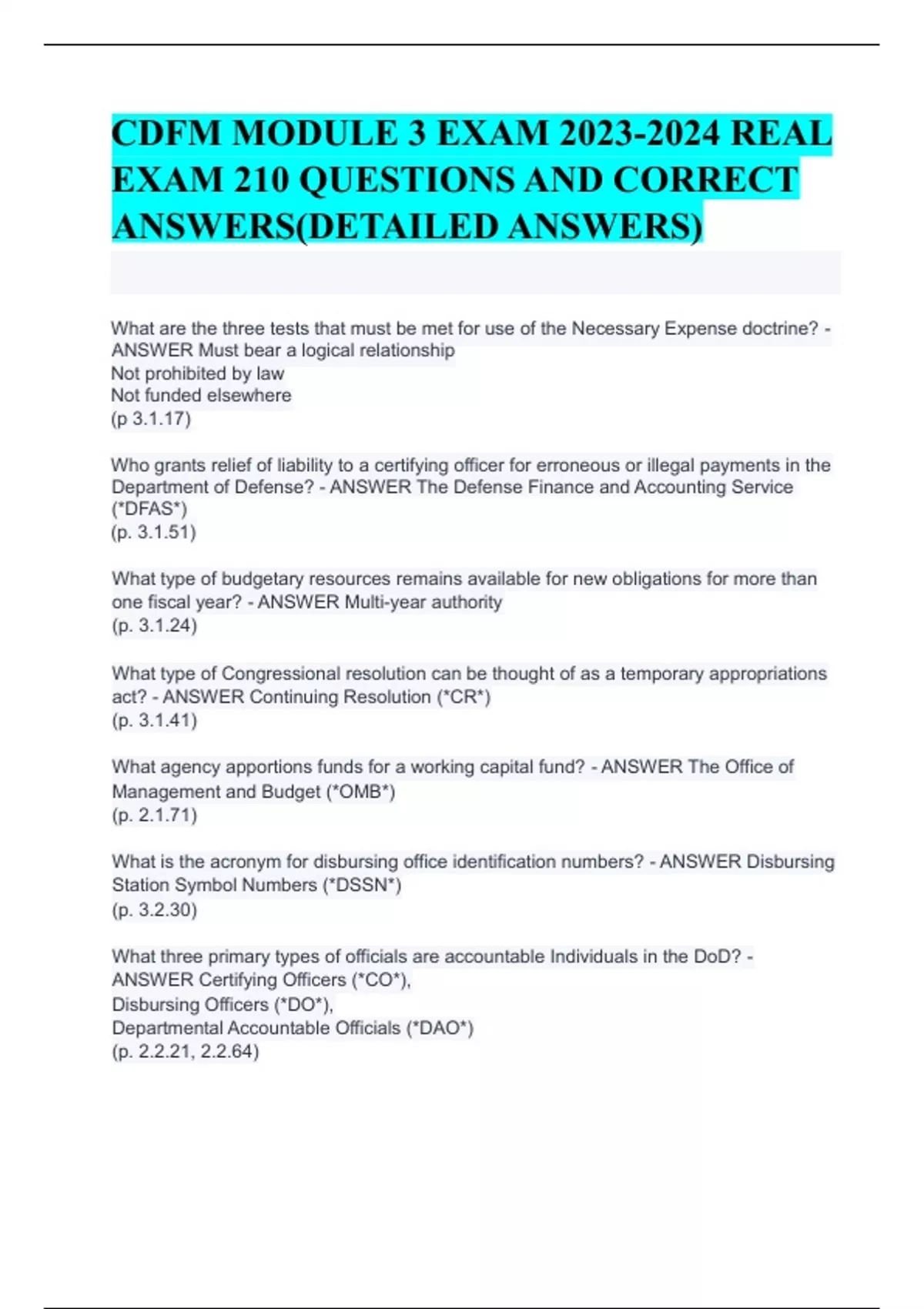 CDFM MODULE 3 EXAM REAL EXAM 210 QUESTIONS AND CORRECT ANSWERS(DETAILED ANSWERS)CDFM MODULE 3 EXAM REAL EXAM 210 QUESTIONS AND CORRECT ANSWERS(DETAILED ANSWERS)CDFM MODULE 3 EXAM REAL EXAM 210 QUESTIONS AND CORRECT ANSWERS(DETAILED ANSWERS)CDFM MODULE 3 EXAM REAL EXAM 210 QUESTIONS AND CORRECT ANSWERS(DETAILED ANSWERS)CDFM MODULE 3 EXAM REAL EXAM 210 QUESTIONS AND CORRECT ANSWERS(DETAILED ANSWERS)CDFM MODULE 3 EXAM REAL EXAM 210 QUESTIONS AND CORRECT ANSWERS(DETAILED ANSWERS)CDFM MODULE 3 EXAM REAL EXAM 210 QUESTIONS AND CORRECT ANSWERS(DETAILED ANSWERS)