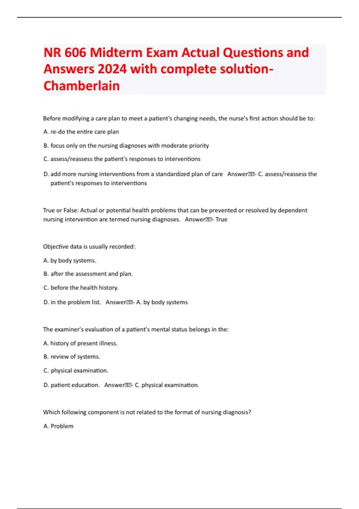 NR 606 Midterm Exam Actual Questions and Answers 2024 with complete solutionChamberlain