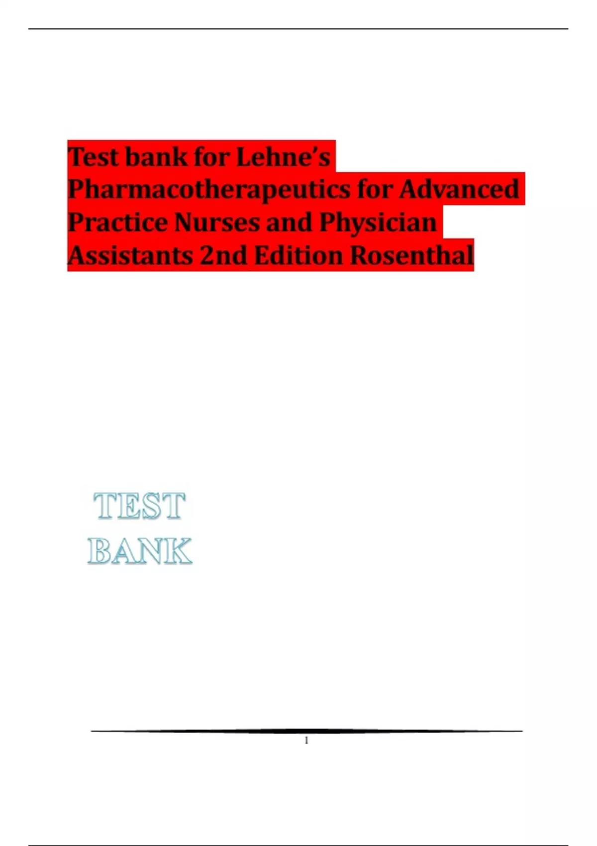 Test bank for Lehne’s Pharmacotherapeutics for Advanced Practice Nurses and Physician Assistants 2nd Edition Rosenthal| ALL CHAPTERS| GRADED A+