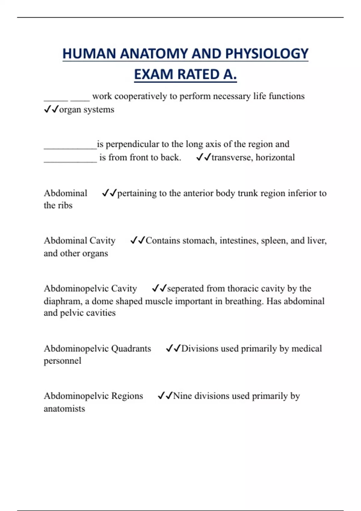HUMAN ANATOMY AND PHYSIOLOGY EXAM RATED A