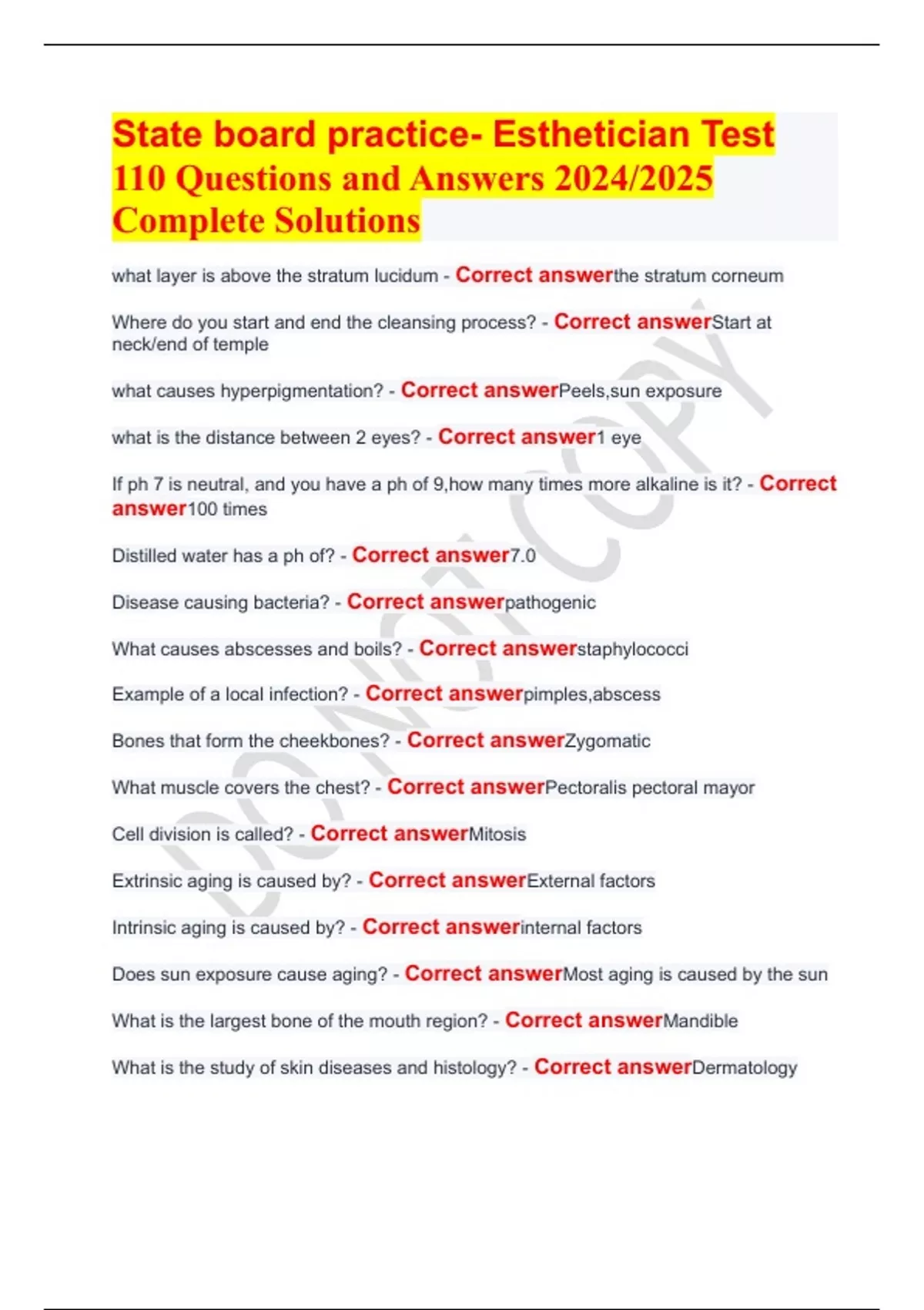 State board practice- Esthetician Test 110 Questions and Answers 2024/2025 Complete Solutions