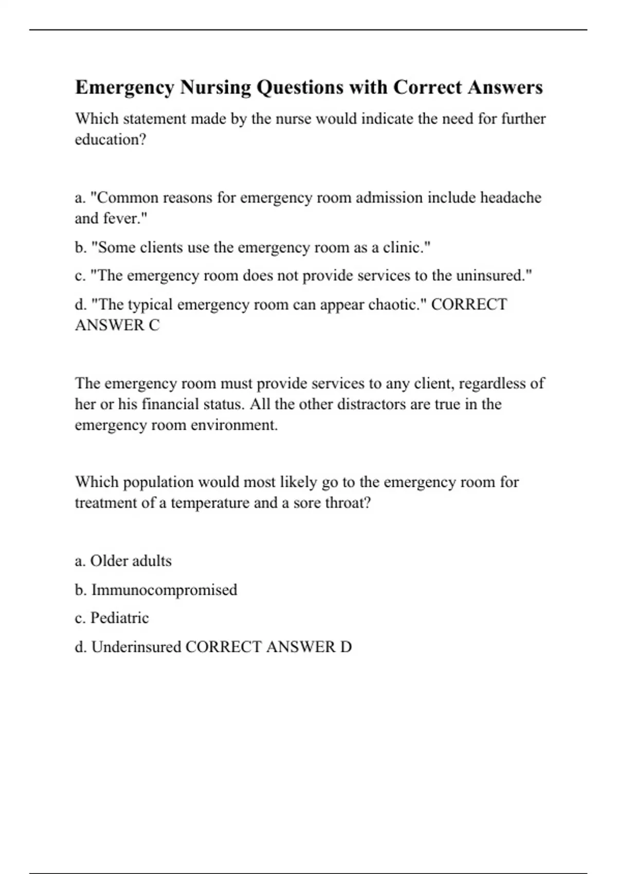 Emergency Nursing Questions with Correct Answers