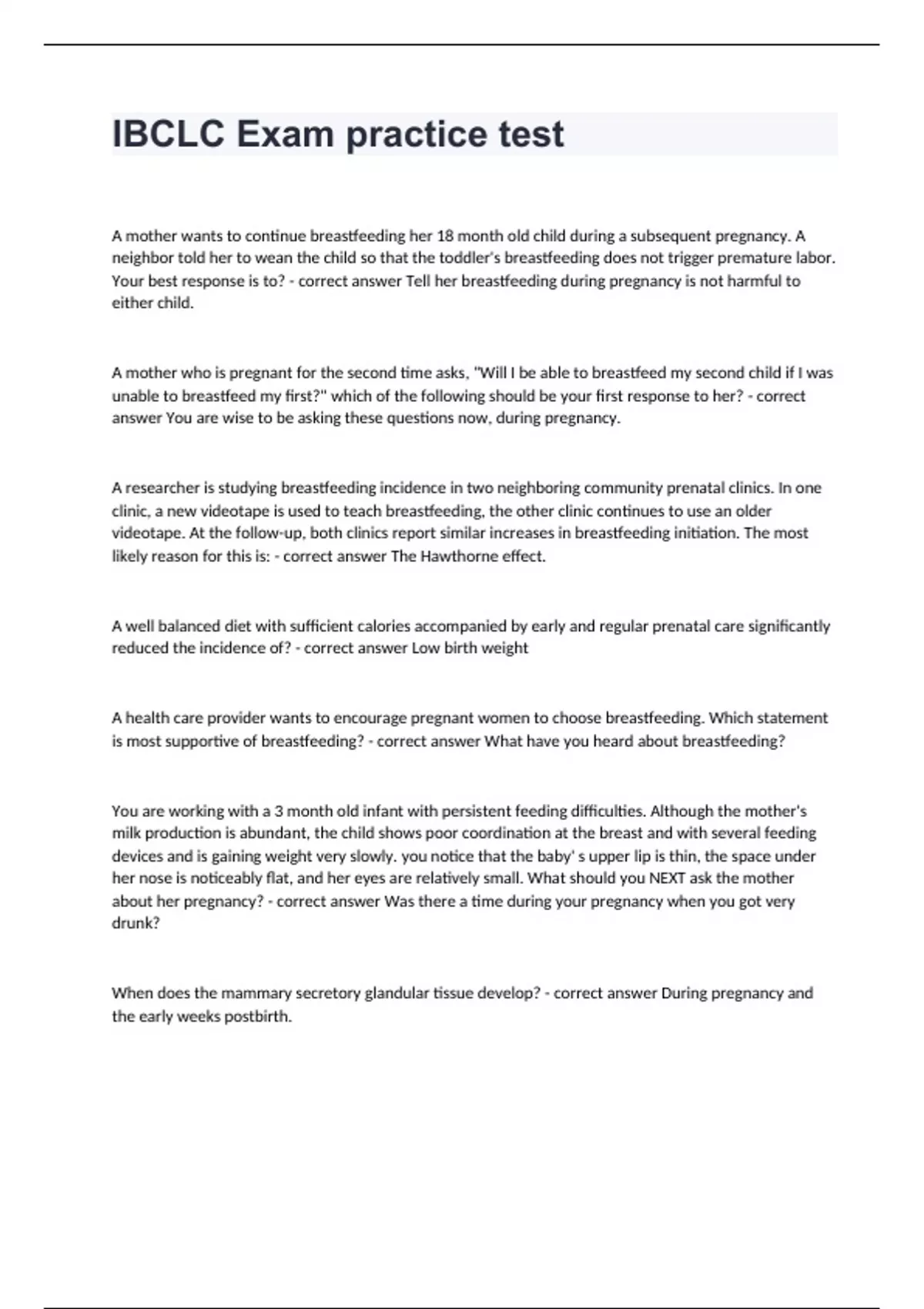 IBCLC Exam practice test correctly answered rated A+ 2024/2025