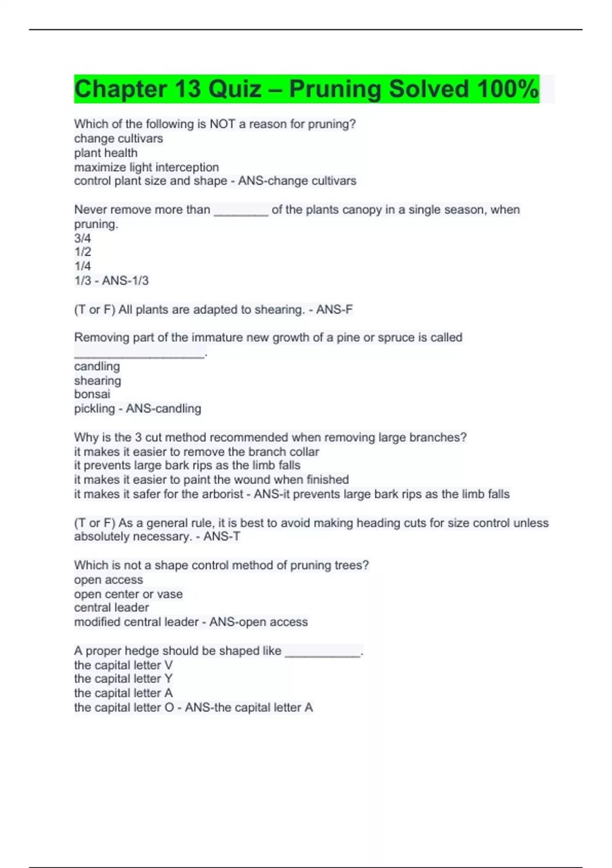 chapter 13 quiz pruning solved 100