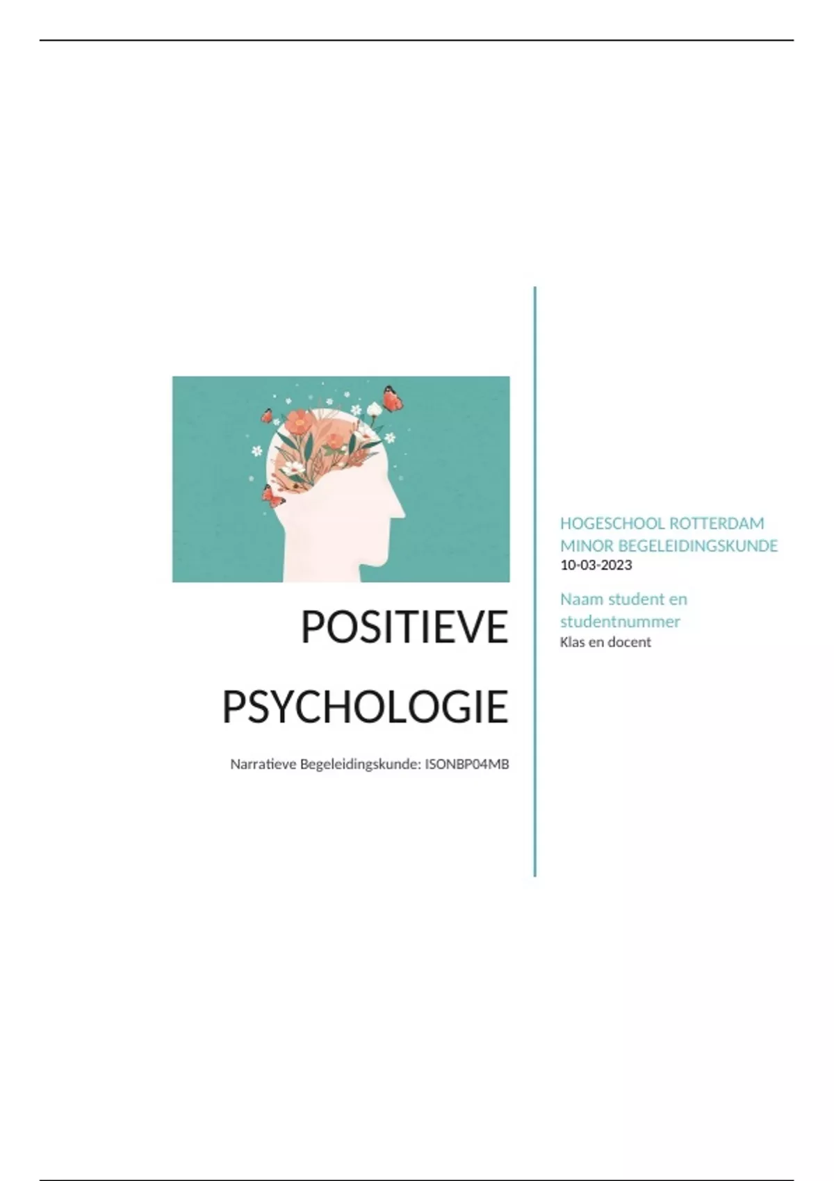 Narratieve begeleidingskunde als onderdeel van het vak Positieve Psychologie van de minor Begeleidingskunde