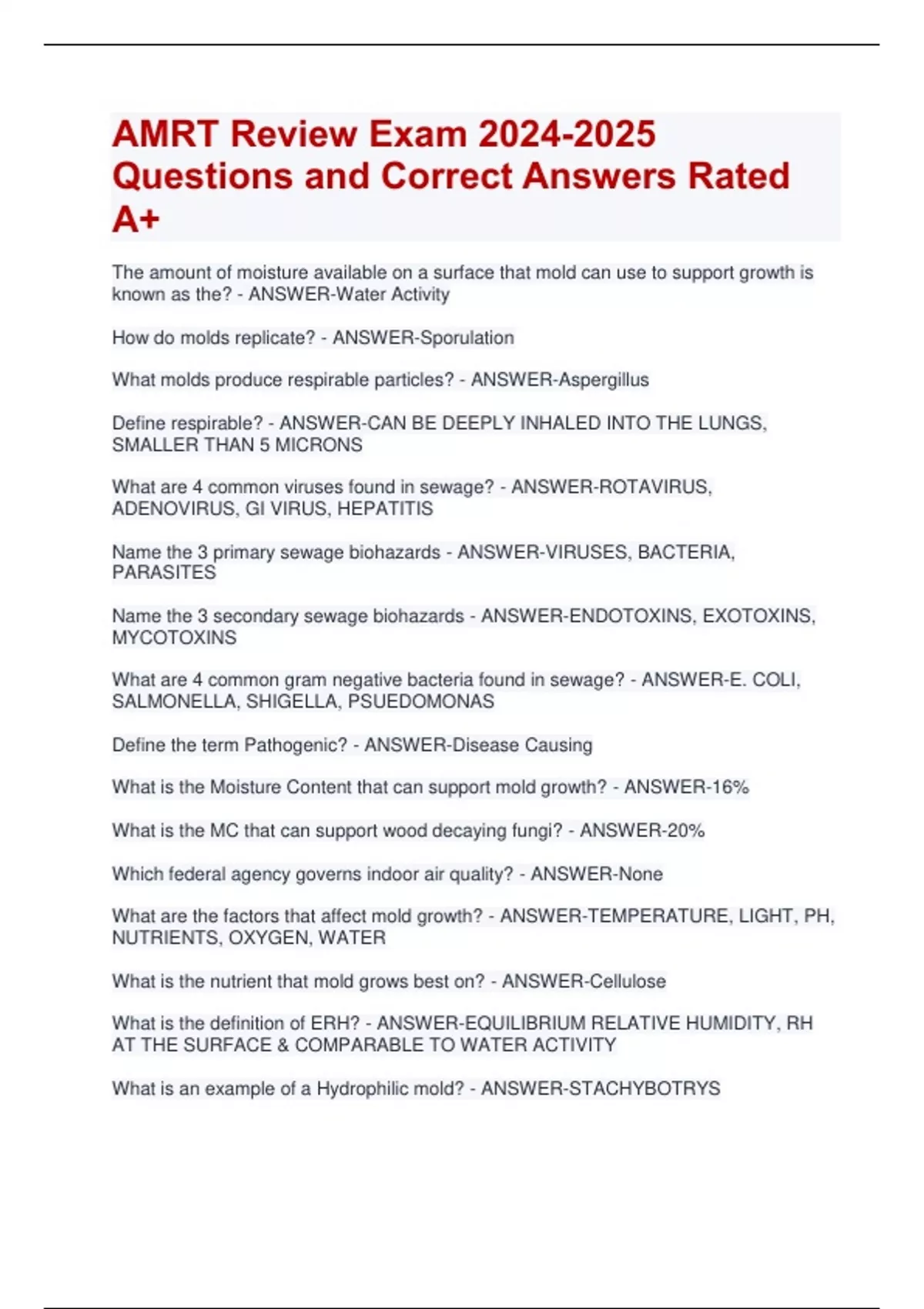 WRT Certification Exam| Water Restoration IICRC Exam Questions and Correct Answers Rated A+