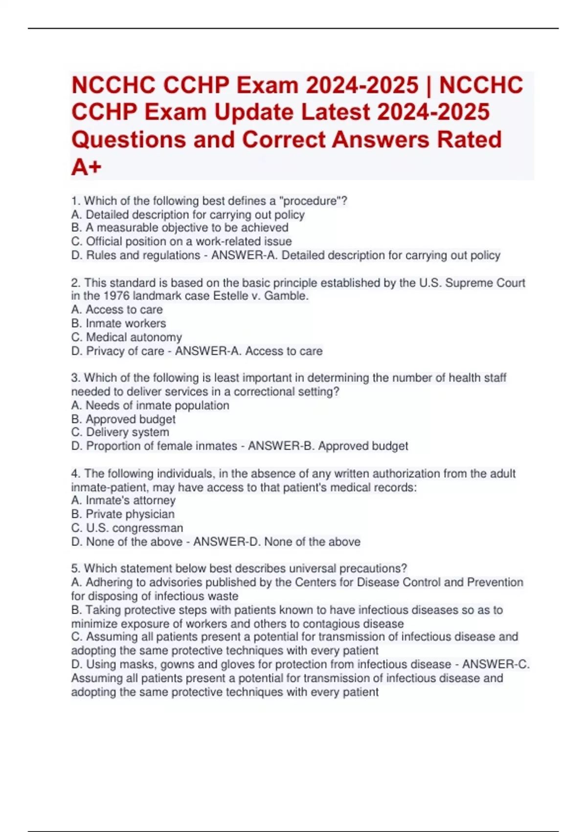 NCCHC CCHP Exam | NCCHC CCHP Exam Update Latest Questions and Correct Answers Rated A+