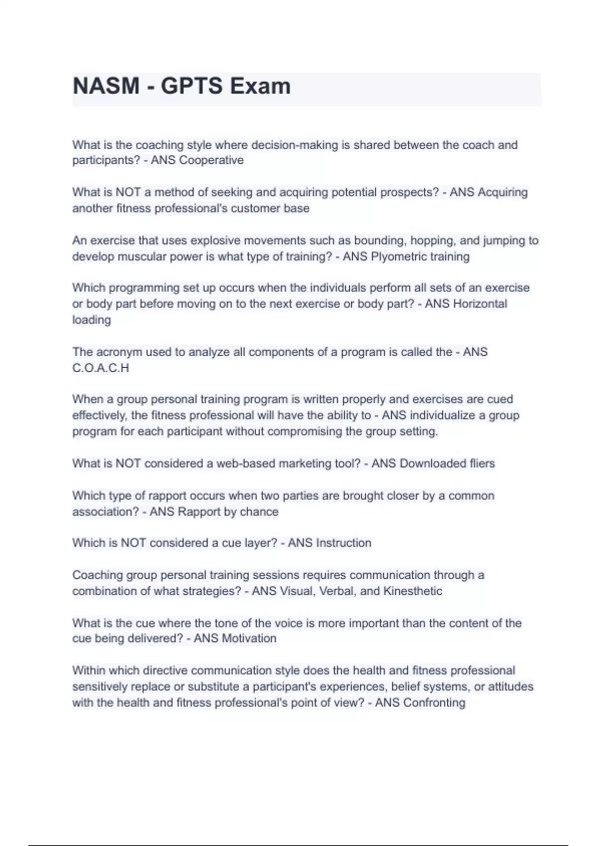 NASM - GPTS Exam 2024/2025 Questions With Verified Solutions.