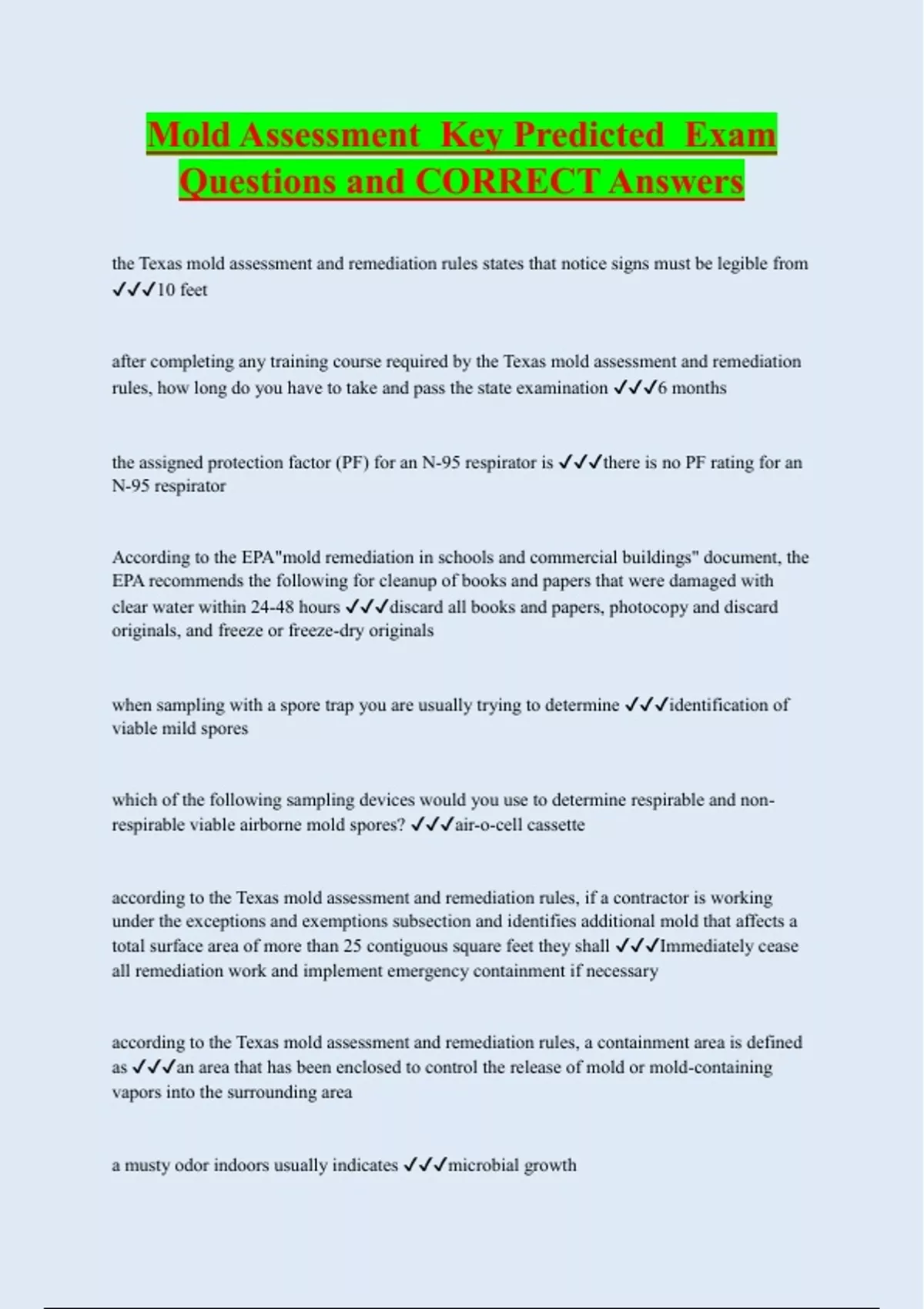Mold Assessment Key Predicted Exam Questions and CORRECT Answers