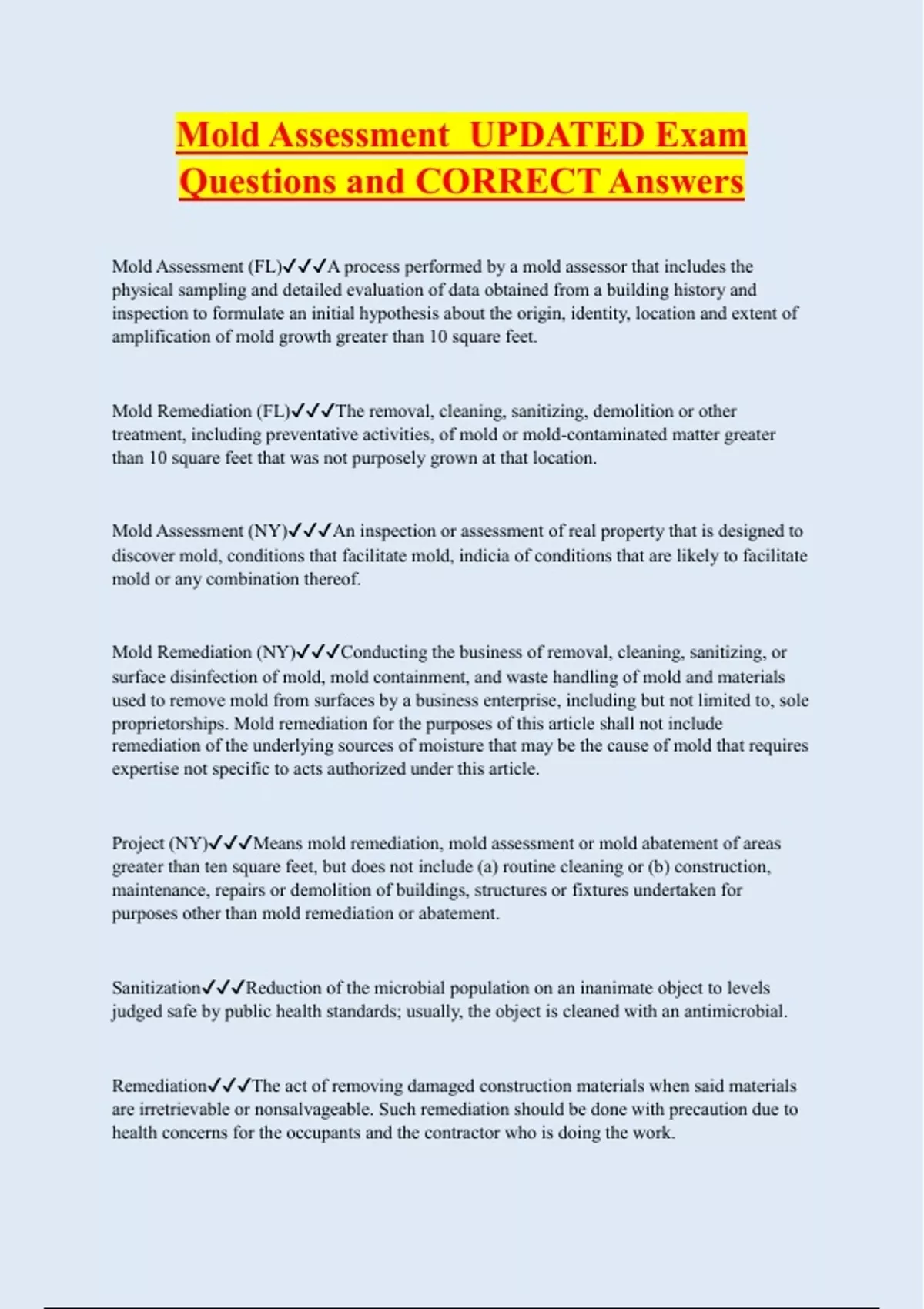 Mold Assessment UPDATED Exam Questions and CORRECT Answers