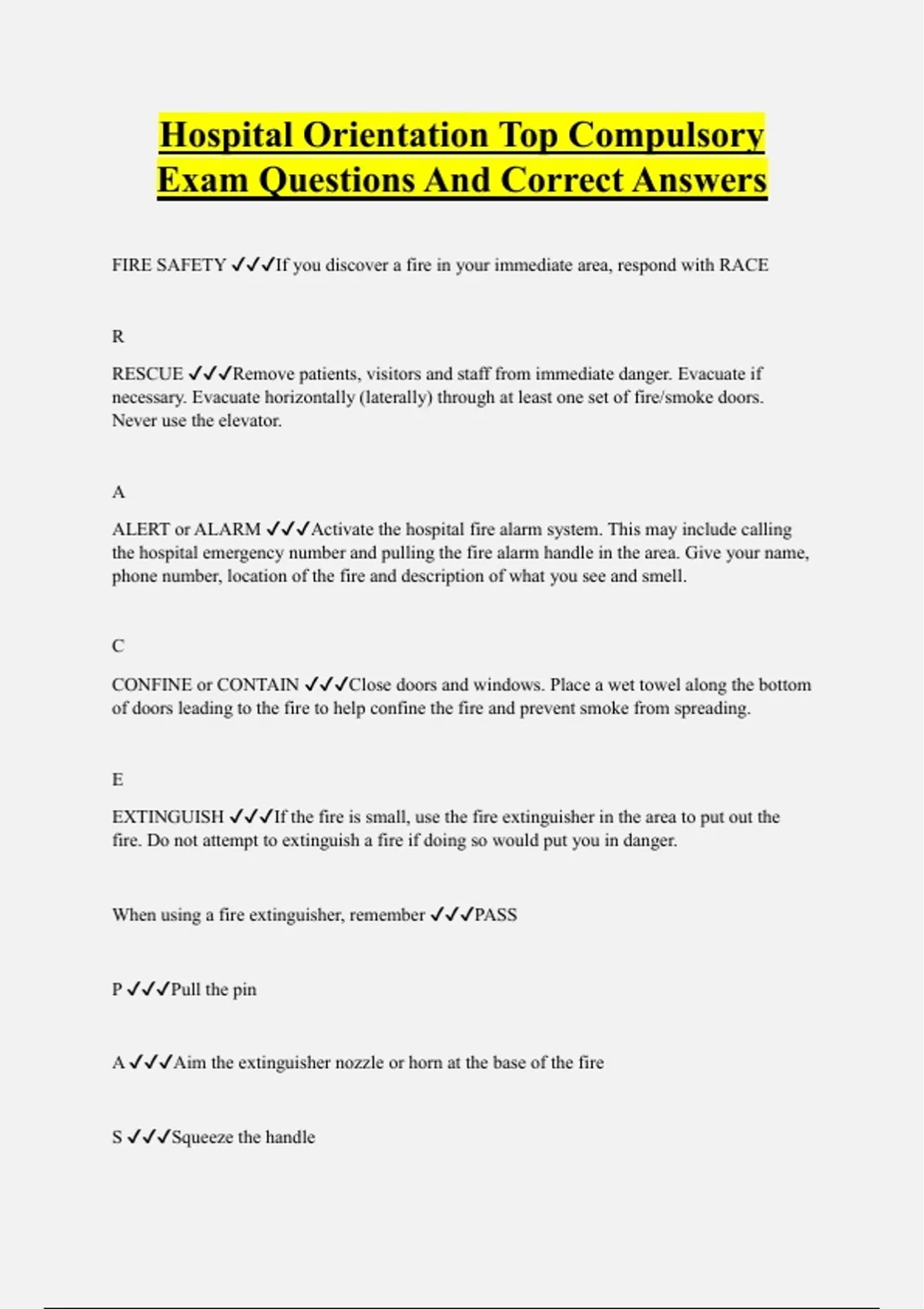Hospital Orientation Top Compulsory Exam Questions And Correct Answers