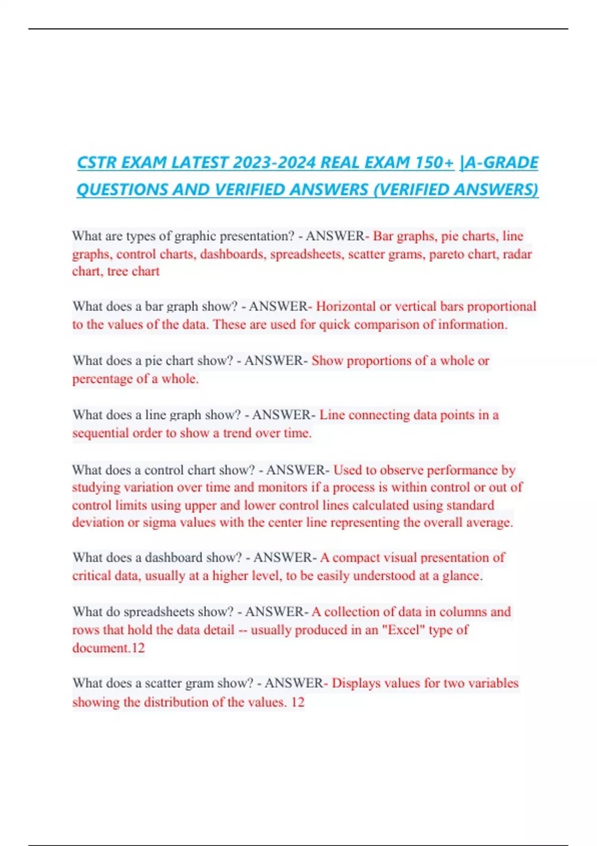CSTR EXAM LATEST REAL EXAM 150+ |A-GRADE QUESTIONS AND VERIFIED ANSWERS (VERIFIED ANSWERS)