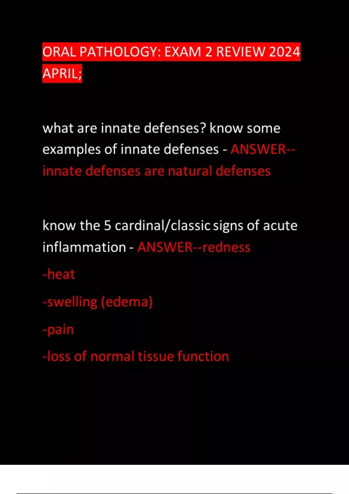 ORAL PATHOLOGY: EXAM 2 REVIEW 2024 APRIL;