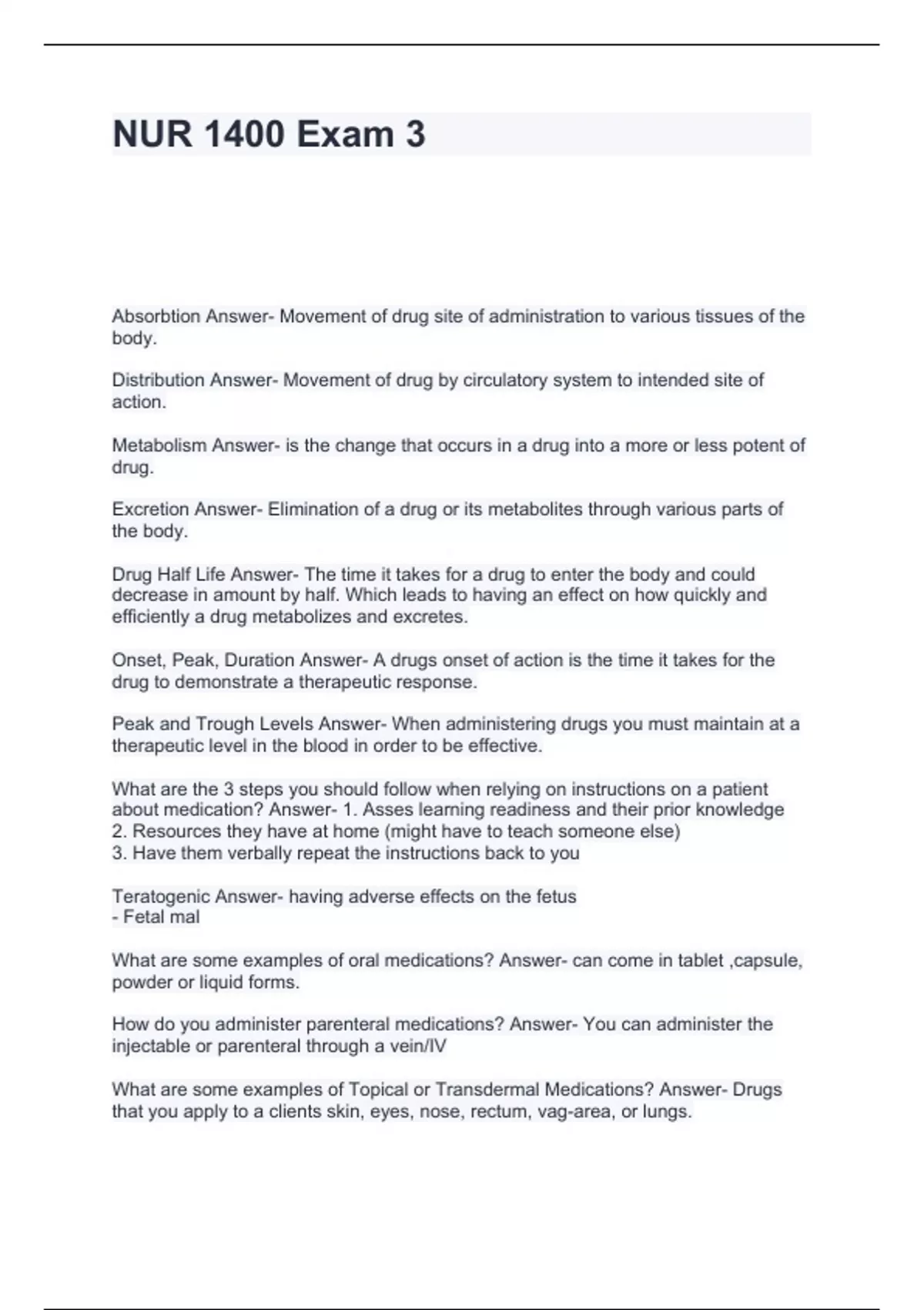 Exam of 3 pages for the course dfg at dfg (NUR 1400 Exam 3.)