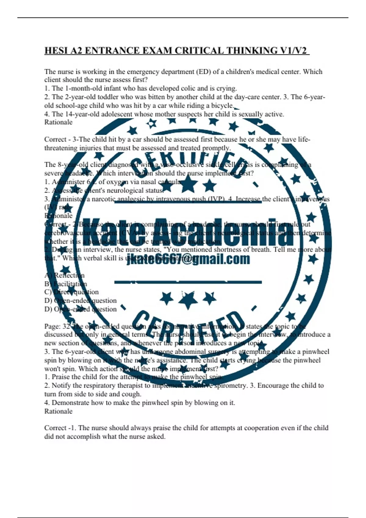 - HESI A2 ENTRANCE CRITICAL THINKING V1/V2