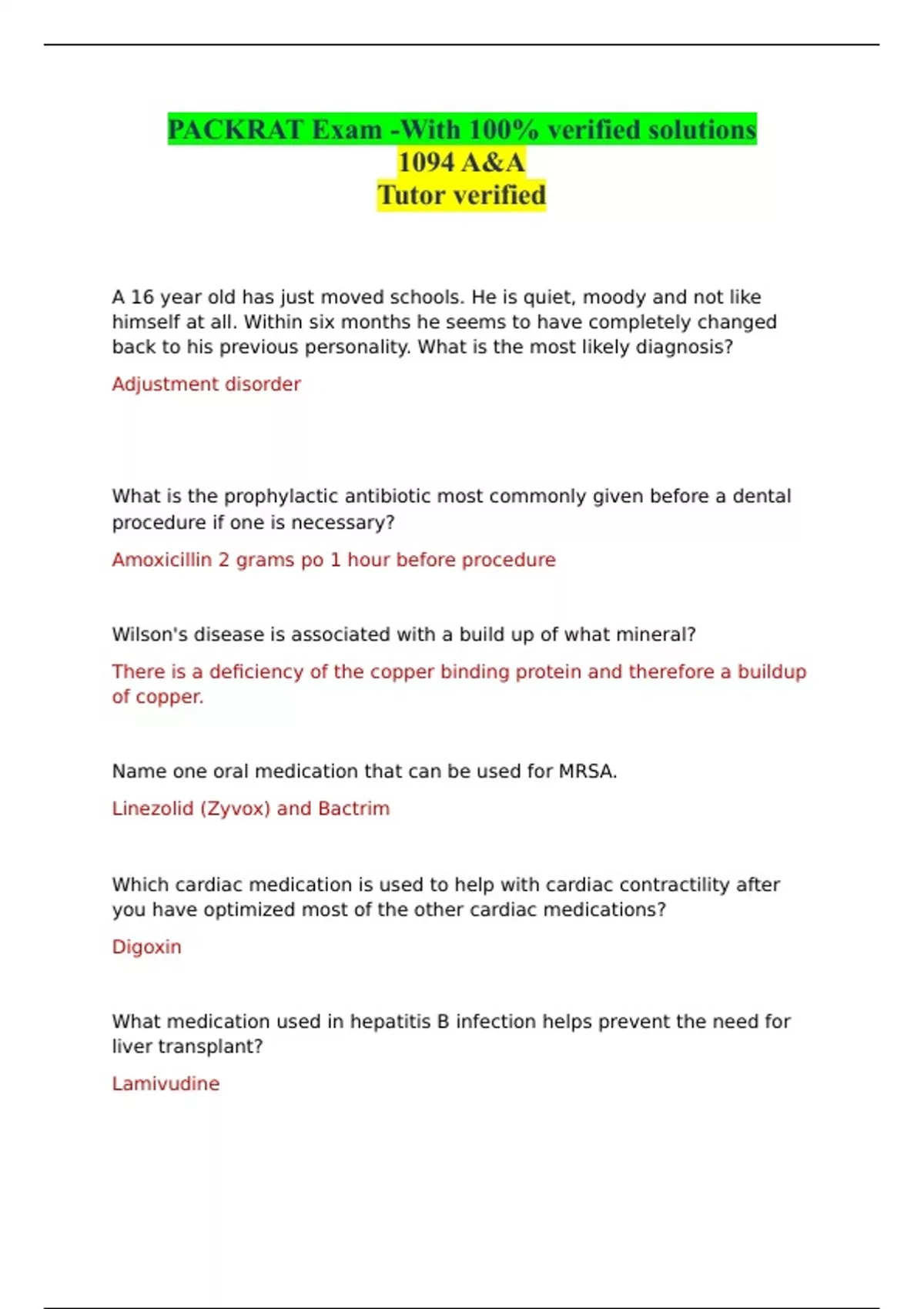PACKRAT Exam -With 100% verified solutions