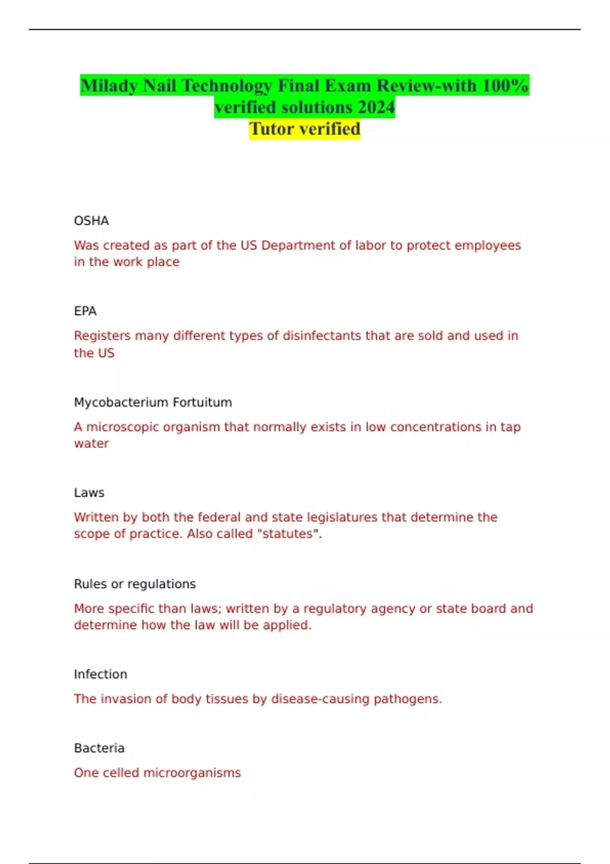 Milady Nail Technology Final Exam Review-with 100% verified solutions 2024