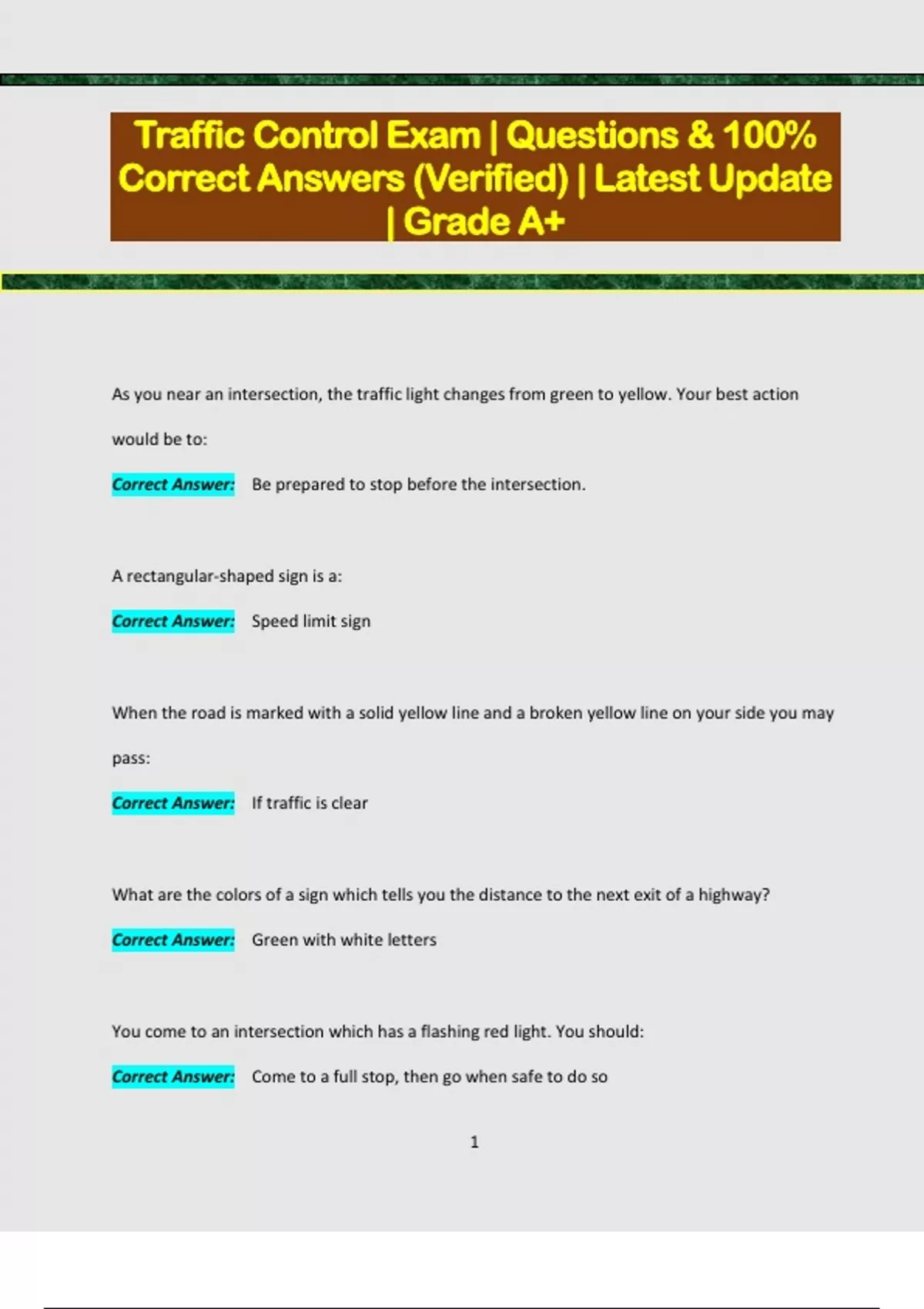 Traffic Control Exam | Questions & 100% Correct Answers (Verified) | Latest Update | Grade A+