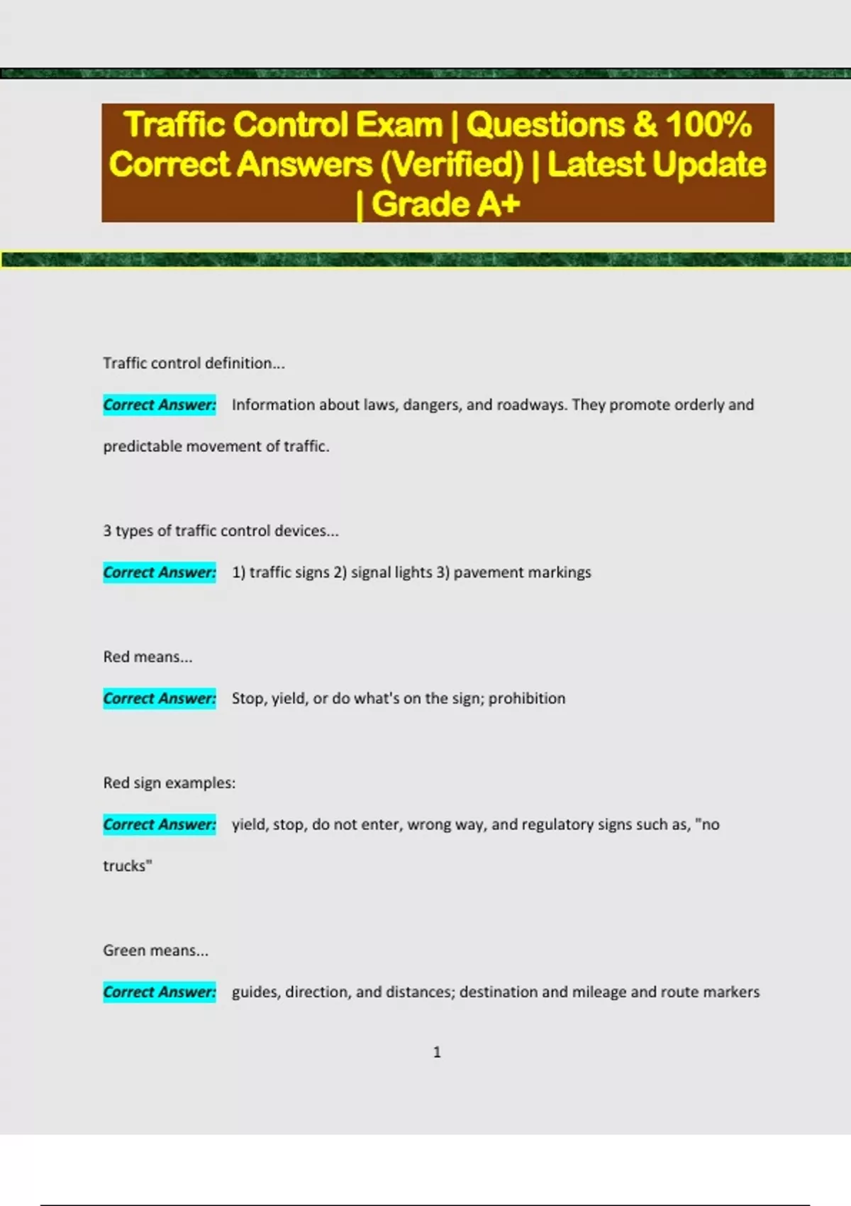 Traffic Control Exam | Questions & 100% Correct Answers (Verified) | Latest Update | Grade A+