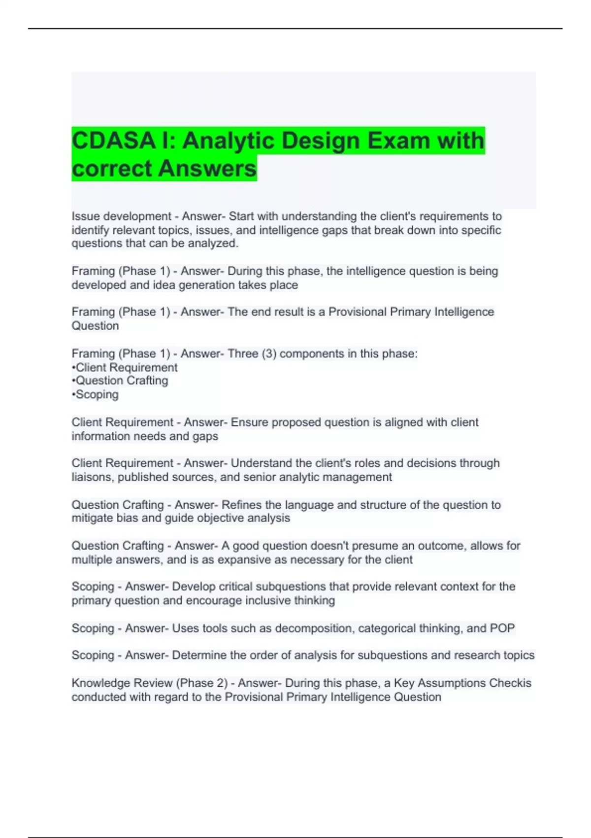CDASA I Analytic Design Exam with correct Answers