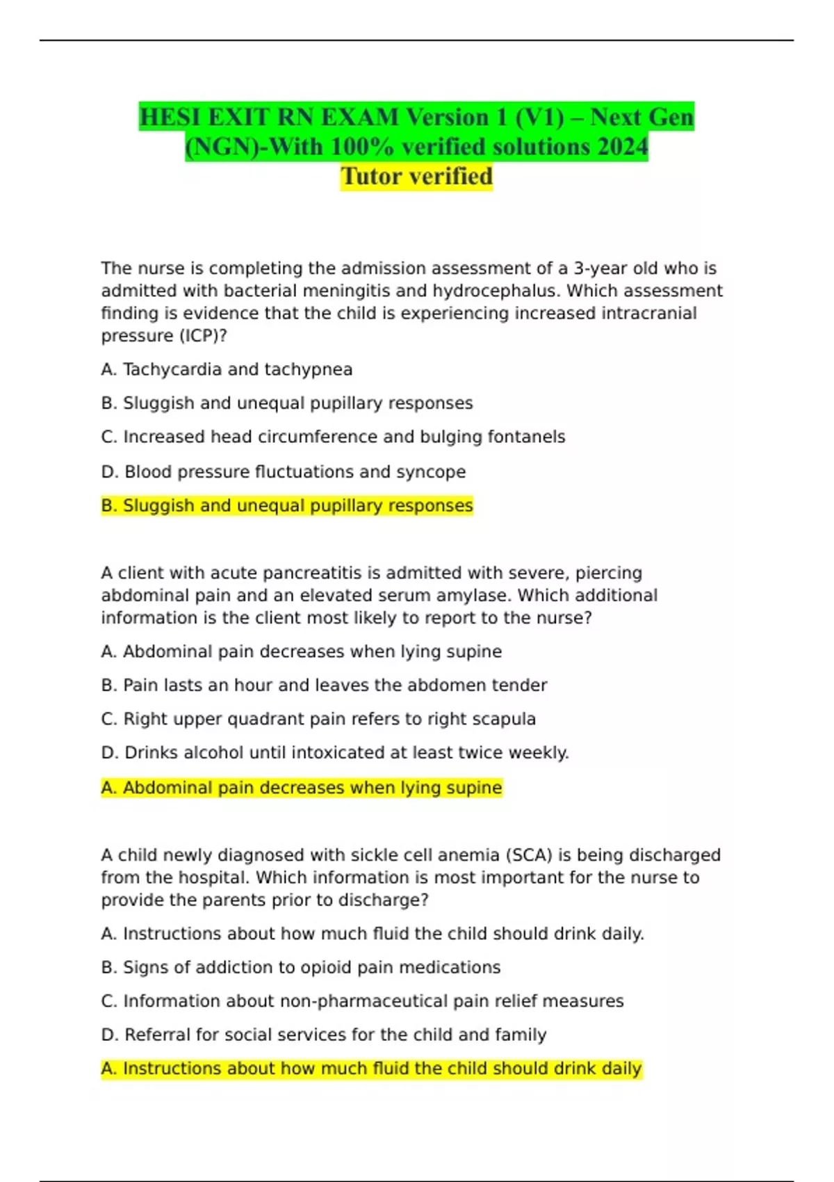 HESI EXIT RN EXAM Version 1 (V1) – Next Gen (NGN)-With 100% verified solutions 2024