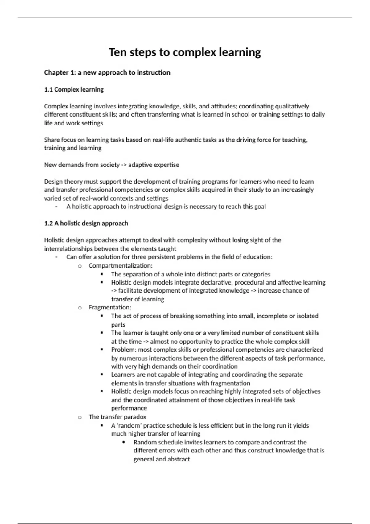 Ten steps to complex learning - summary whole book (chapter 1 to 16) - ISBN: 9781138080805 - ontwerpen van leersituaties gevorderd