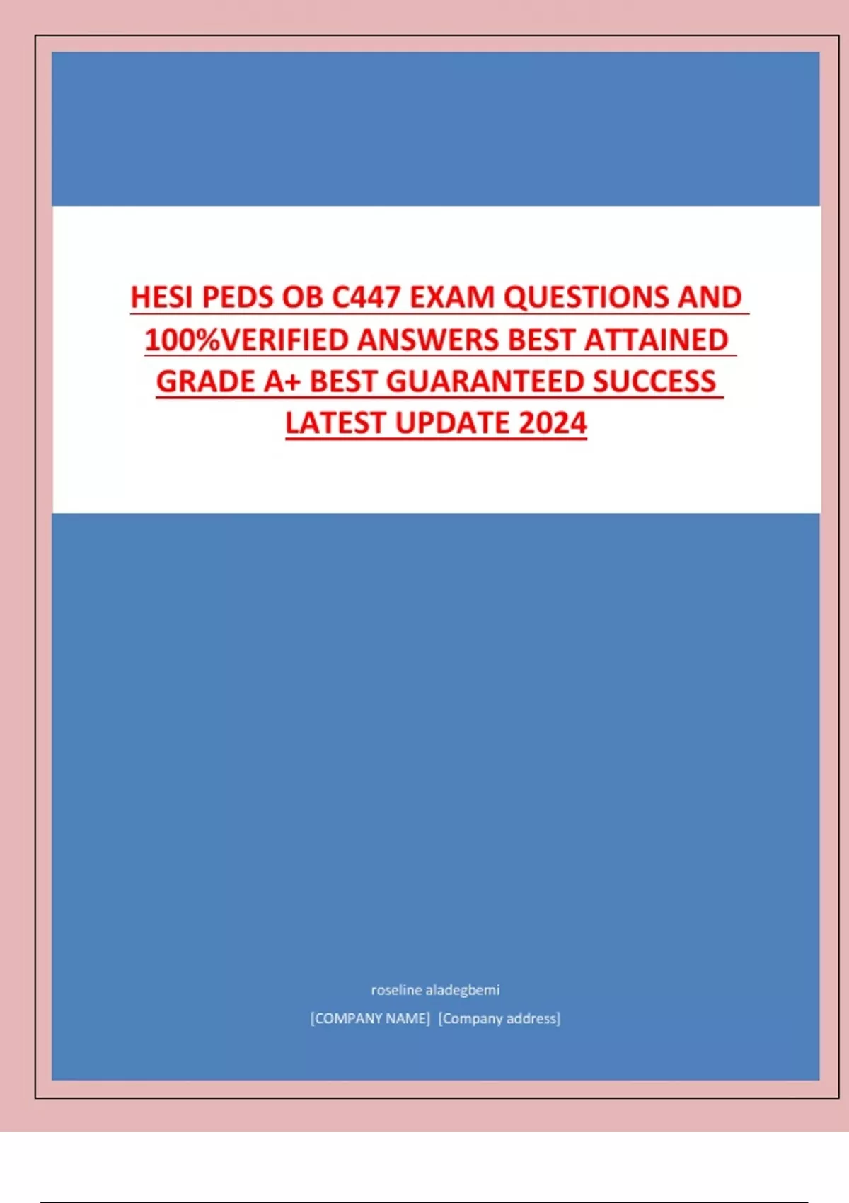 HESI PEDS OB C447 EXAM QUESTIONS AND 100%VERIFIED ANSWERS BEST ATTAINED GRADE A+ BEST GUARANTEED SUCCESS LATEST UPDATE 2024