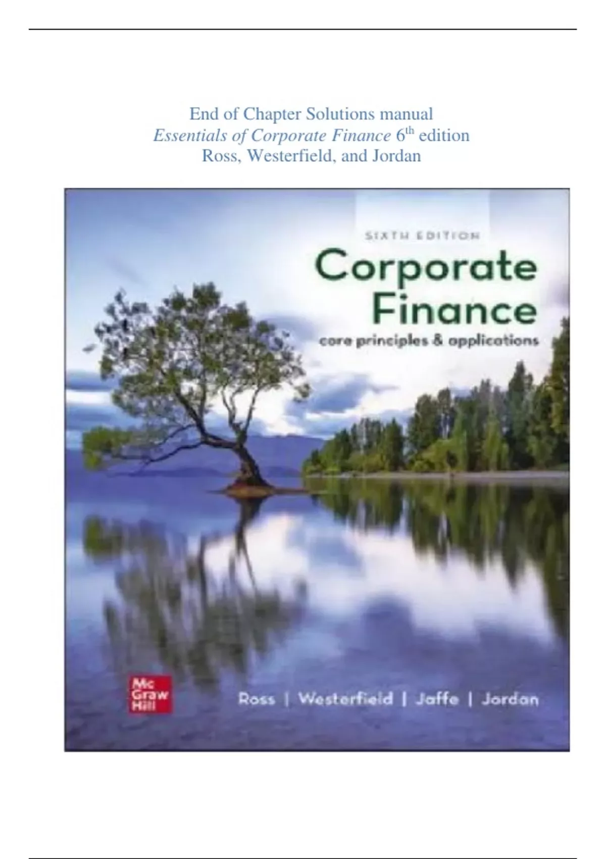 End of Chapter Solutions manual Essentials of Corporate Finance 6th edition (Ross, Westerfield, and Jordan) perfect solution 2024 graded A+