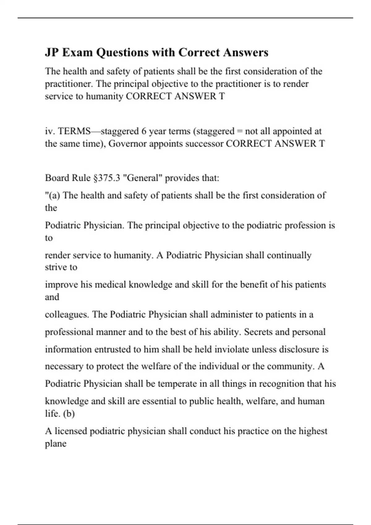 JP Exam Questions with Correct Answers